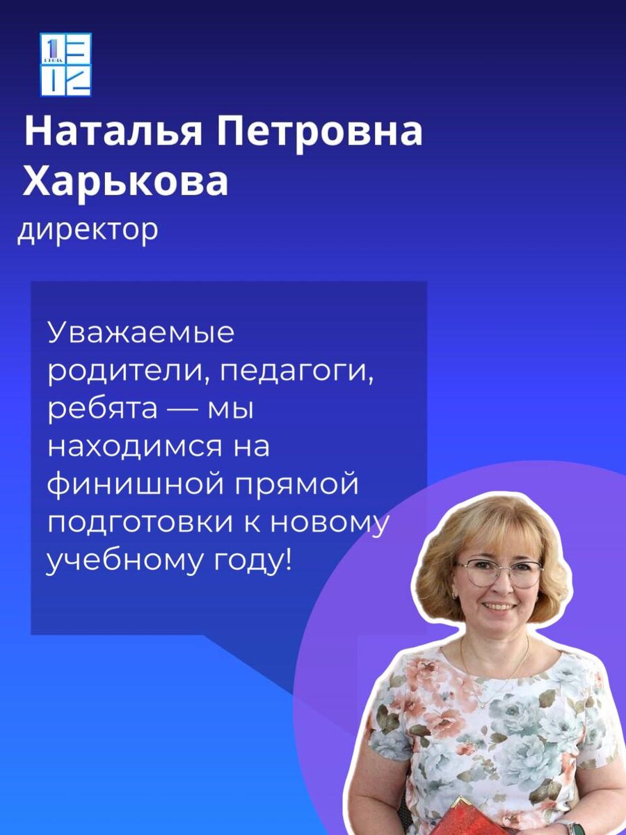 ☀️ Доброе утро, школа №1302! Уважаемые родители, педагоги, ребята — мы приближаемся к старту нового учебного года! 📚✨ Сегодня все педагоги нашей школы вышли на работу, и впереди нас ждёт насыщенная и интересная неделя 🙌 💬 Приветствие от директора, Натальи Петровны Харьковой: «Желаю вам лёгкой, увлекательной, позитивной рабочей недели! Уважаемые родители, всю информацию по Дню знаний вы получите от классных руководителей в течение этой недели. Всем хорошего и продуктивного дня!» #ДОНМ #НашиЛица
