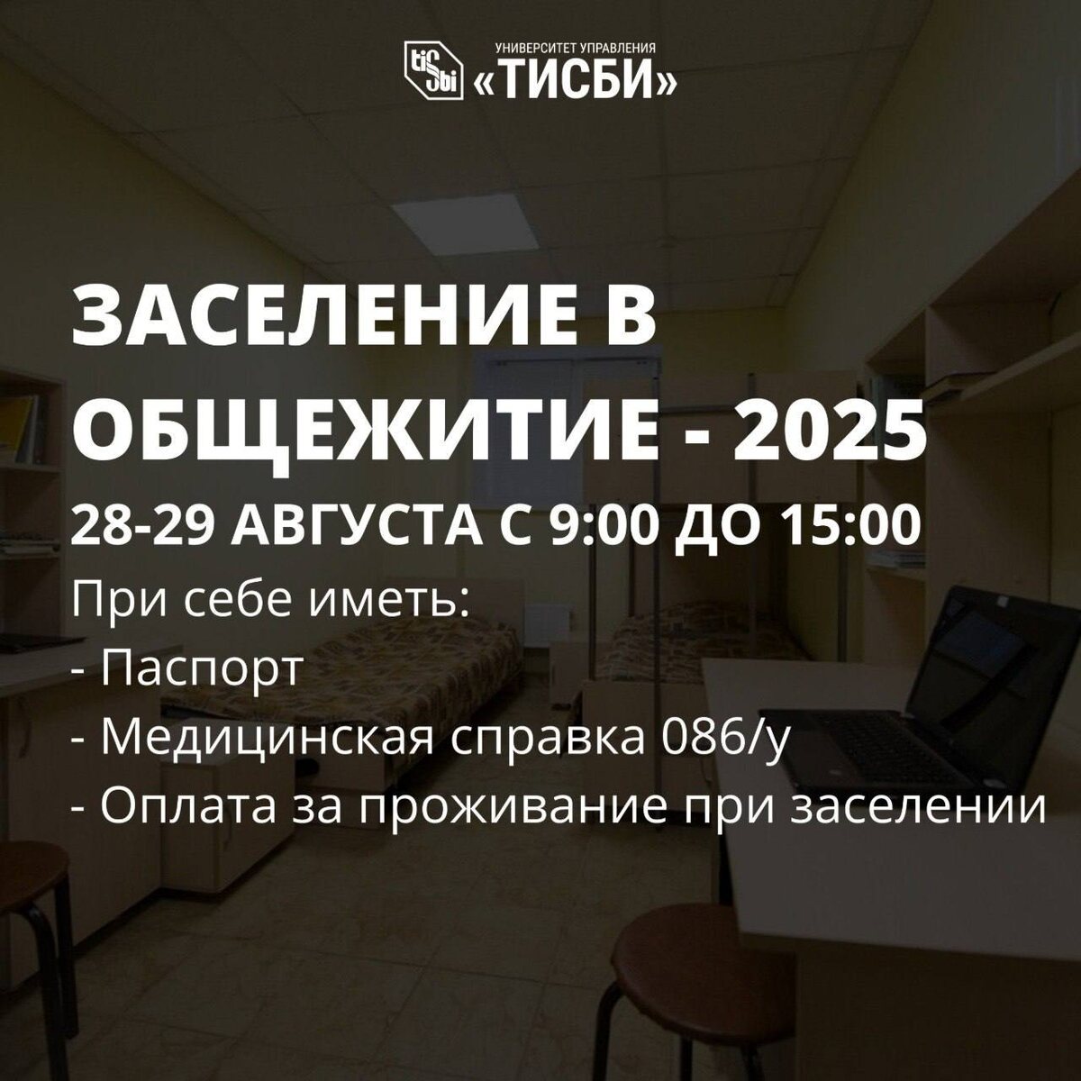 🏠Заселение в общежитие - 2025 Для многих студентов начинается волнующее событие - переезд в новый город и заселение в общежитие! Знакомим вас с датами заезда и необходимыми документами. 28 и 29 августа - с 9:00 до 15:00: Бари Галеева, д.4 29 августа - с 9:00 до 15:00: Беломорская, д.18а; Короленко, д.39; Хостел «ТИСБИ», ул. Ульянова-Ленина, д.23; Хостел ул. Аделя Кутуя, д.86/2. При заселении с собой необходимо иметь: - Паспорт - Медицинская справка 086/у - Оплата за проживание при заселении 🧳 Собирайте чемоданы, настраивайтесь на позитивный лад и приготовьтесь к незабываемому студенчеству!