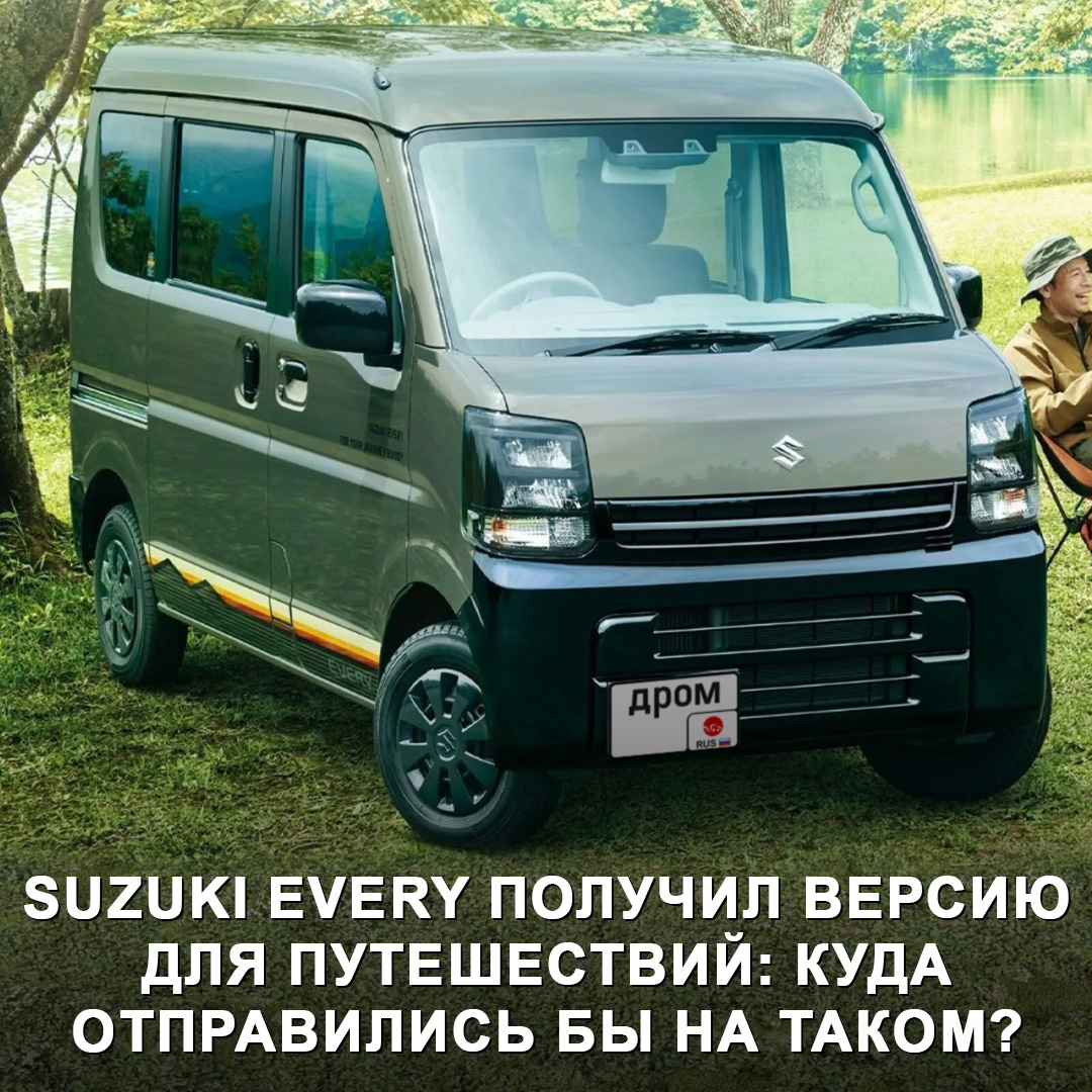 Suzuki Every в этом поколении выпускается уже с 2015 года. Чтобы ещё немного подстегнуть спрос на модель, японцы представили версию для путешествий — J Limited. Её отличительные особенности: — Чёрные глянцевые бамперы, корпуса боковых зеркал, дверные ручки и центральные стойки. — Специальные цвета кузова: серый, синий, зелёный или оранжевый. — Наклейки на кузов и колпаки на колёса. — Среди аксессуаров — сетчатый вещевой мешок под потолком, крепёж утвари на стенках салона, багажник на крышу, мультимедиа с Bluetooth и камерой заднего вида. Техника: — Трёхцилиндровый турбомотор 0,66 л на 64 л.с. (95 Нм) и вариатор. — Задний или полный привод. — Габариты — 3 395 х 1 475 х 1 910 мм, колёсная база — 2 430 мм. Цена на родине в пересчёте — чуть больше 1 100 000 ₽. Как думаете, по России комфортно путешествовать на таком автомобиле? 🤔 #дромновость #suzuki #every #jlimited #кейкар