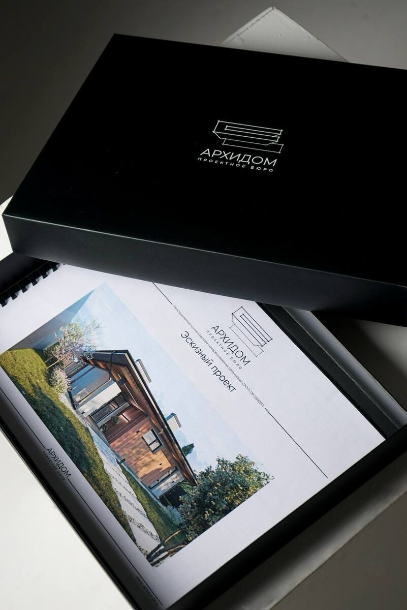 Это целая история, мечта, оформленная в линиях, цветах и пропорциях. И мы хотим, чтобы к этой мечте можно было прикоснуться ещё до того, как на участке появится первый фундамент или в интерьере зазвучит жизнь. Поэтому мы передаём проекты в виде альбома, оформленного так, чтобы вы могли держать в руках будущее своего дома. Листать страницы, рассматривать детали, останавливаясь на каждой визуализации, как на предвкушении. И да, момент передачи проекта для нас — особенный. Это не просто деловая встреча. Это маленькая церемония. Альбом мы вручаем в фирменной коробке и пакете, которые уже сами по себе задают тон: ничего случайного, только продуманные решения и внимание к каждой детали. Даже когда мы создавали эти коробки, поняли, что компромиссов не будет. Нам хотелось, чтобы материалы были тактильными, приятными, чтобы одно прикосновение вызывало то самое ощущение качества, которое мы закладываем в каждый проект. Оказалось, что в Воронеже нет типографии, которая смогла бы сделать это так,