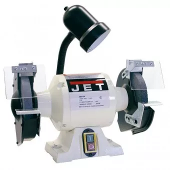Универсальный точильный станок для заточки и шлифовки. Имеет два круга с разной зернистостью. Один — для черновой обработки, второй — для финишной. В корпус встроена подсветка щитка. Мощность — 370 Вт, подходит под большинство задач.