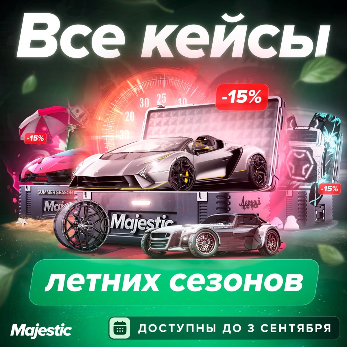 🦋 Уже завтра: все летние кейсы доступны в игре — успейте забрать самые горячие награды Откройте для себя прошлые коллекции одежды, машин и редких предметов — от лета 2022 года до уходящего сезона: 👉Cо скидкой 15% — Летний пропуск 2022; — Летний пропуск 2023; — Коллекция скинов - Лето 2023; — Летний пропуск 2024; — Автомобильная коллекция - Лето 2024; — Летняя коллекция Neon. 👉Без скидки — Летний пропуск 2025; — Автомобильная коллекция - Лето 2025. Акция продлится до 3 сентября — забирайте уникальные предметы в «F2 >> Магазин», пока они не исчезли до следующего лета. ❤️ Majestic Role Play