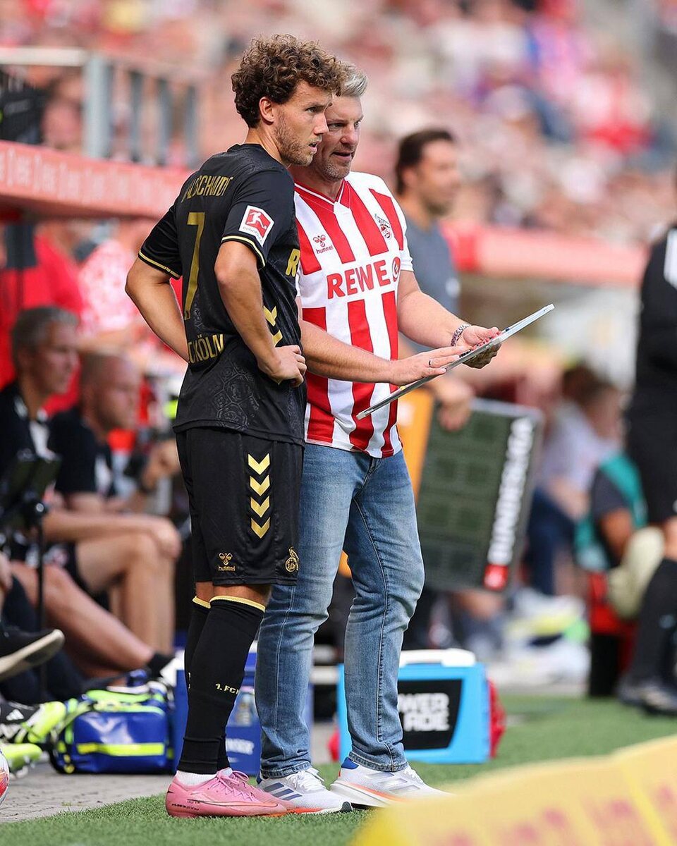 Нечасто увидишь. Вчера главный тренер немецкого «Кельна» стал звездой медиа. Во время матча он управлял командой в игровой футболке. Обычно, коучи стоят на бровке в спортивном/деловом костюме или повседневке. Поэтому такое появление босса «Кельна» стало перфом. Отсюда идея: такие перевоплощения тренерского штаба на матчах можно использовать для рекламы новой формы. Сработает? 💯 – да 👍 – нужно пробовать 👀 – не думаю ПРО маркетинг в спорте