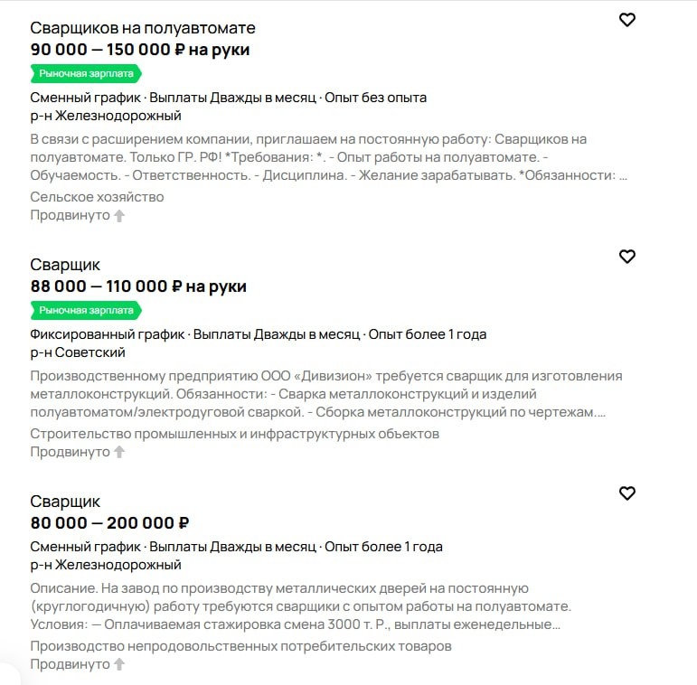 Сварщики стали самой высокооплачиваемой профессией в России в августе. Средняя зарплата специалистов составила более 228 тыс. руб. В тройке лидеров оказались DevOps-инженеры и специалисты по анализу данных (data scientist), их средняя зарплата достигла 200 тыс. руб. В Воронежской области сварщикам предлагают зарплаты от 80 тыс. руб., что свидетельствует о востребованности этой профессии на региональном рынке труда.
