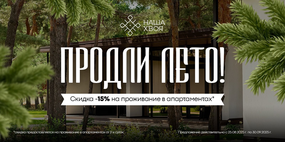 🌲 Продли лето! Скидка 15% на проживание в апартаментах