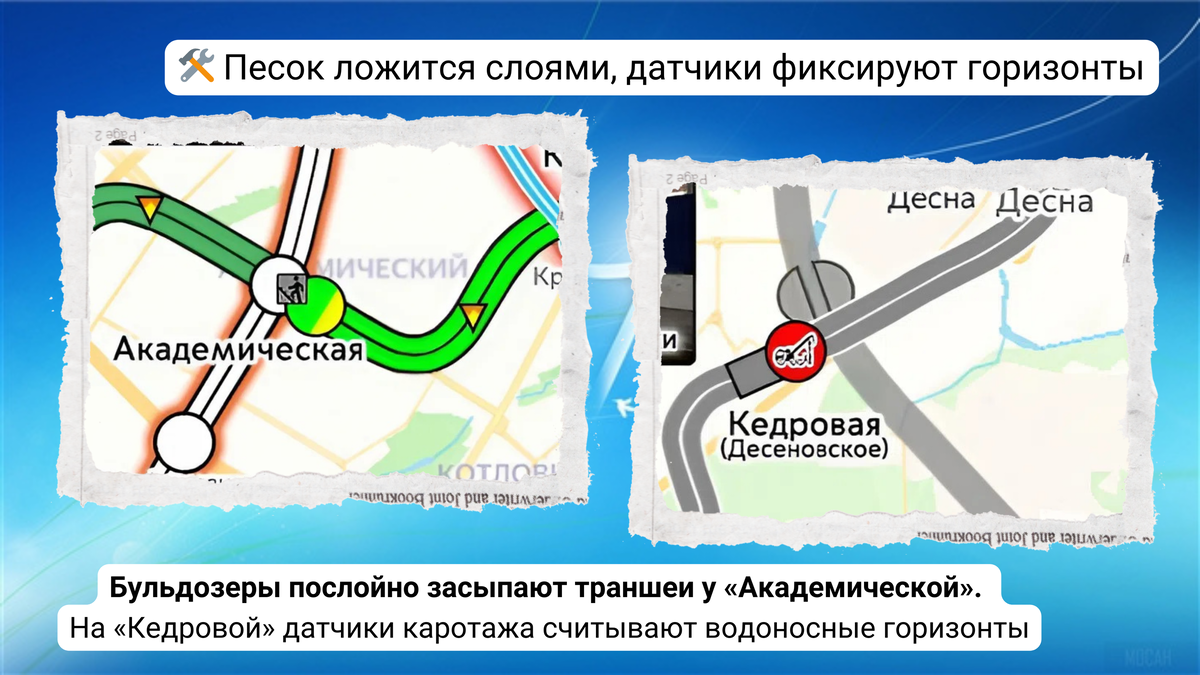 официальные отчеты. Давайте вместе разберемся, что же на самом деле происходит с нашей Москвой. Поехали? Во-первых, погладим на площадку 🚇«Академическая» 🏡 Троицкой линии. 📷 1.1: Началась обратная засыпка над верхним перекрытием отстающего восточного торца станции. 📷 1.2-1.3: В центральной части площадки укатываются слои дорожного "пирога" из песка и щебня — проезжей части ул. Дмитрия Ульянова. 📷 1.4-1.7: В западной части (со стороны Профсоюзной улицы) активными темпами укладывается асфальт будущей проезжей части ул. Дмитрия Ульянова. И вновь бурова