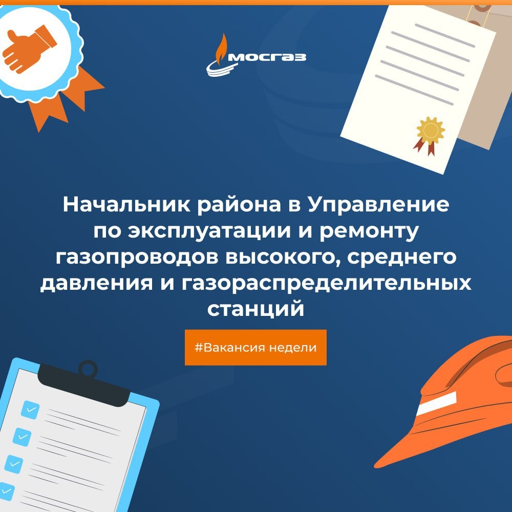 🔥МОСГАЗ в поиске: Начальник района в Управление по эксплуатации и ремонту газопроводов высокого, среднего давления и газораспределительных