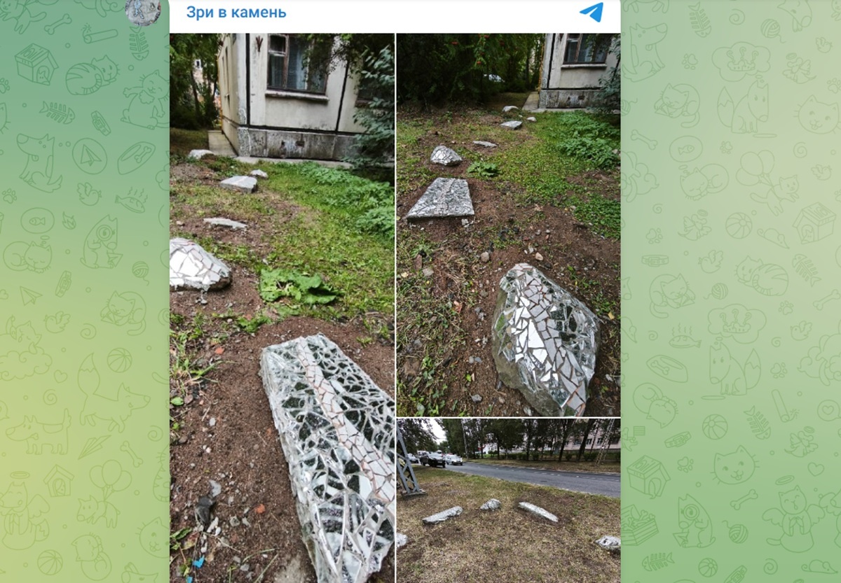 На улицах Петрозаводска стали появляться камни с зеркалами. В арт-объекты превращаются обычные валуны, серые ступеньки лестниц. В городе появляются сверкающие змеи, лягушки, петроглифы и другие необычные «мозаики». Занимается столь необычным стрит-артом местный житель. О работе, трудностях и результате молодой человек рассказывает в телеграм-канале «Зри в камень». «Карелия лежит на камнях. Камни – ее кожа. Люди в порыве рутины топчут землю, бегут по-важному. А так важно иногда остановиться, окинуть взором настоящее и увидеть себя в нем. Зеркала хранят свет, которого там мало», - говорится в описании канала уличного художника. Так, у дома №6 на Первомайском проспекте на газоне появилась зеркальная змея. В ее основе валявшиеся в этом месте годами куски бордюра. Теперь на этих обломках бетона сделана мозаика из зеркальных осколков. Скоро забытая лестница на Первомайском проспекте также станет зеркальным арт-объектом. Мастер использует в работе старые зеркала, остатки плиточного клея, зати