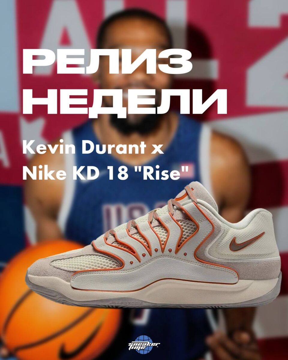 Релиз недели: Kevin Durant x Nike KD 18 “Rise” Nike и Кевин Дюрант переносят нас в студенческие годы звезды NBA. Новая расцветка “Rise” отдает дань уважения Texas Longhorns, где Дюрант впервые заявил о себе как о будущем зале славы База выполнена в нейтральных оттенках Soft Pearl и Light Bone, а фирменный Campfire Orange акцентирует боковые «клетки» и детали брендинга Получилась пара, которая одновременно хранит дух Остина и легко вписывается в современный гардероб 🗓 Релиз: 29 августа 💰 Цена: $155 IT'S TIME FOR SNEAKERS