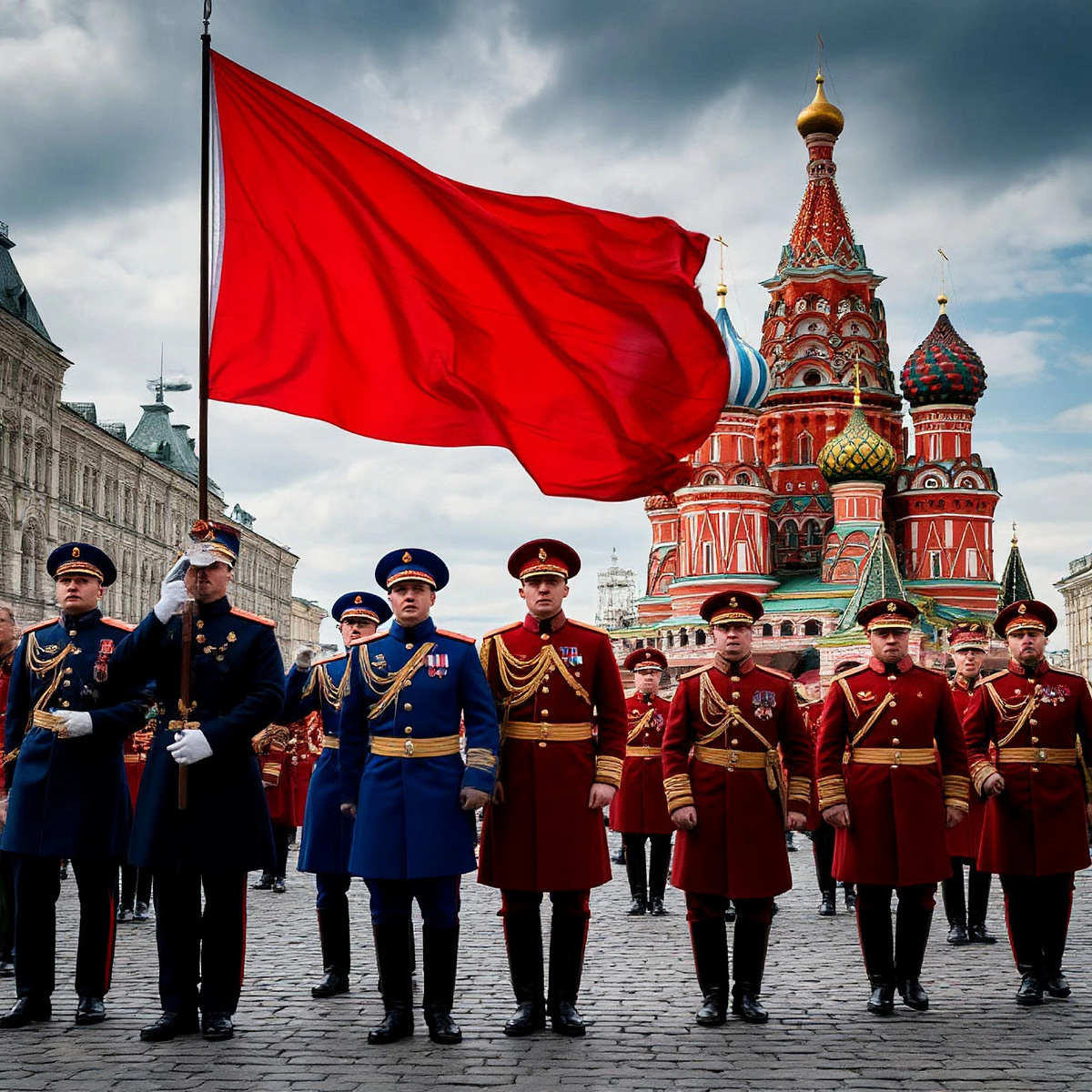 Красный — цвет державности, мужества и крови, пролитой за Отечество.