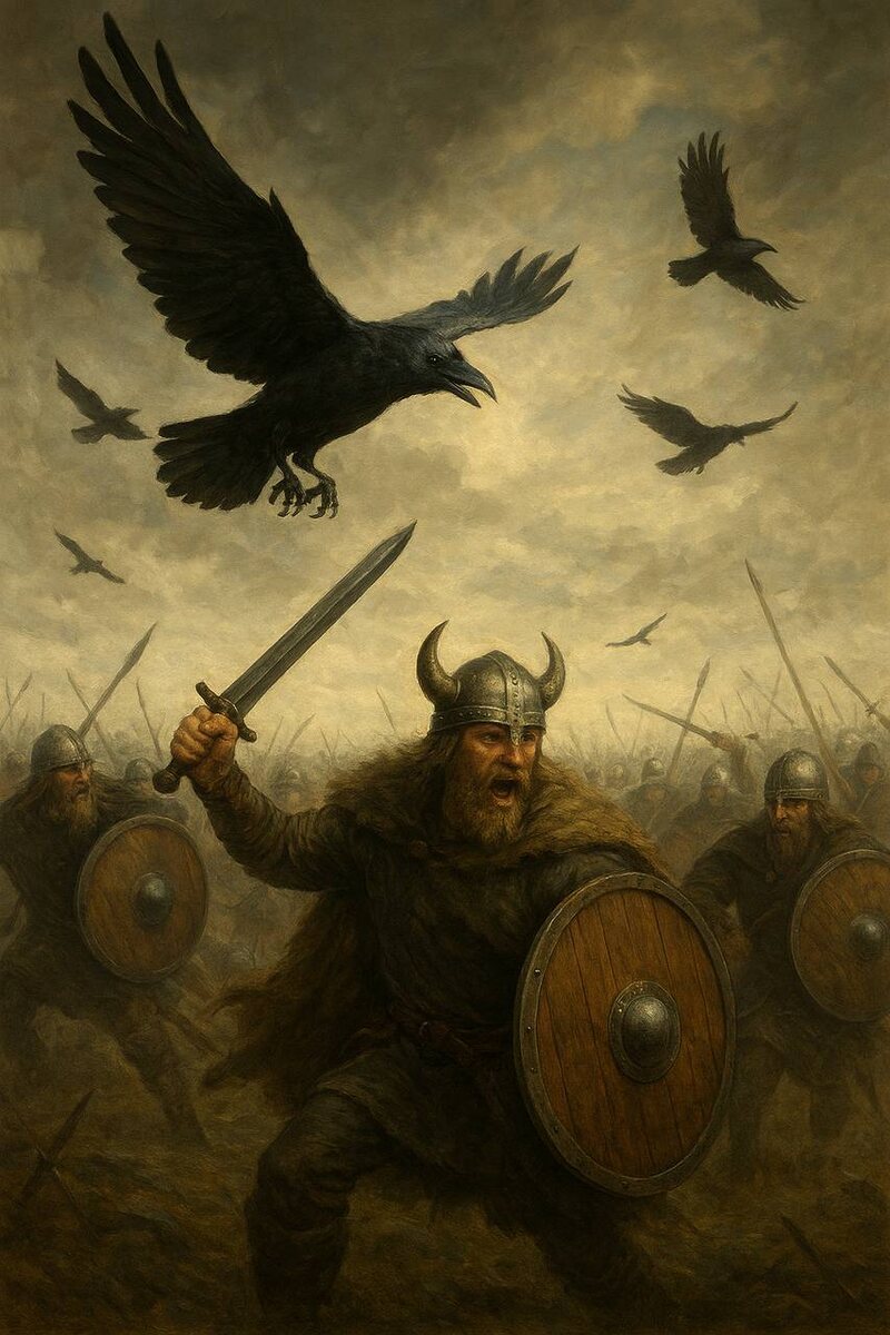 🦅 Вороны — одни из самых священных птиц для викингов. ⚡ Их считали глазами и ушами Одина, ведь его спутниками были два ворона — Хугин («мысль») и Мунин («память»). 👁 Каждый день они облетали мир, возвращаясь к своему хозяину и рассказывая ему обо всём, что видели. Для викингов эти птицы были символом мудрости, предвидения и связи с богами. 🔥 На поле боя вороны ассоциировались со смертью, ведь они первыми слетались на павших воинов. Но для северян это был не только знак конца, но и предвестие славы, ведь павший сражался достойно. ⚔️ Воины верили, что вороны приносят им удачу и помогают заслужить место в Вальхалле. Их изображения часто встречались на знамёнах, амулетах и оружии. 🦅 Ворон был не просто птицей — это символ воина, мудреца и самого Одина.