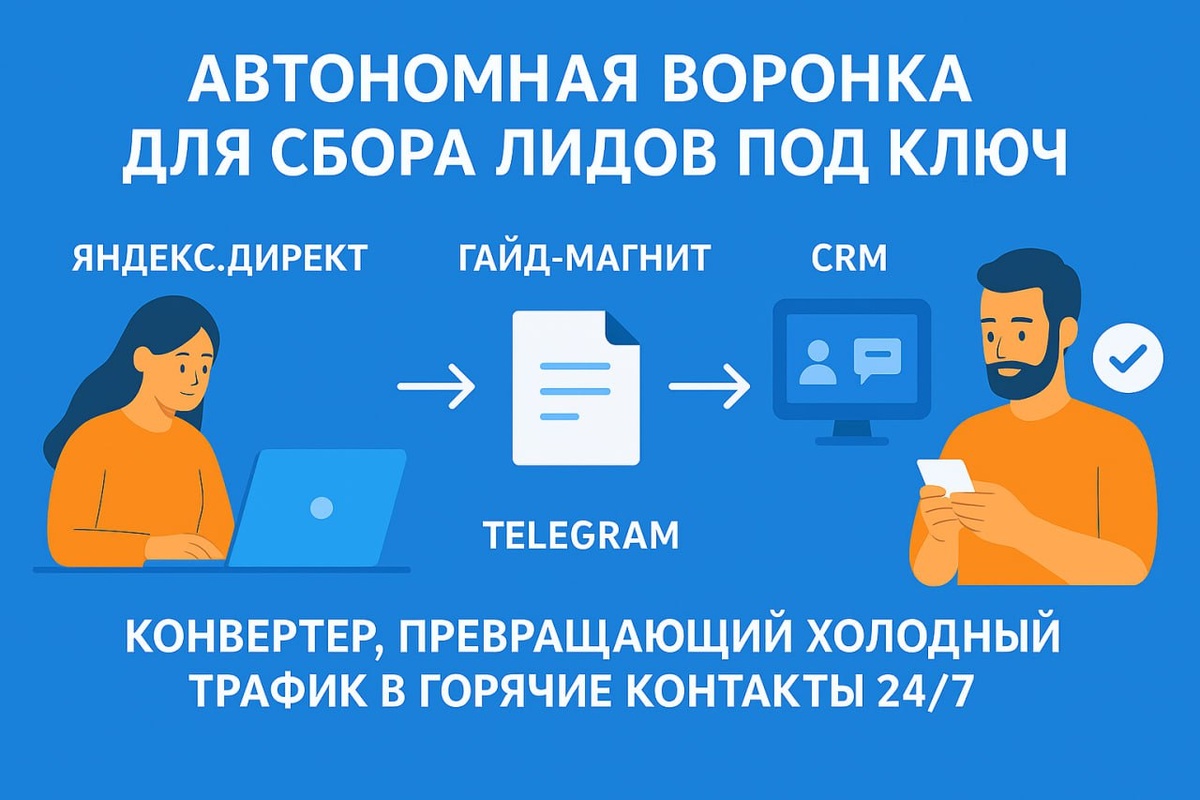 Тот самый инструмент для швейных фабрик, о котором я говорил! В прошлом посте я рассказывал про решение сфокусироваться на швейных фабриках. Помните формулу «5 единичек»? Так вот, я собрал свою связку под эту схему — конвертер, который превращает холодный трафик в горячие контакты 24/7 (или нужное для меня время). Автономная воронка для сбора лидов под ключ. Как это будет работать — просто и технологично: 1. Льем трафик из Яндекс.Директ на сайт с лид-магнитом (например, «Как швейной фабрике сократить расходы на 20%»). 2. Человек получает гайд через Telegram-бота, который моментально фиксирует его контакт. 3. Данные сразу летят в CRM (например, Bitrix24) — менеджер видит горячий контакт и может сразу же выходить на связь. 4. Новый лид подписывается на канал, где мы его греем полезным контентом. В чем преимущество данной связки? ✅ Автоматический сбор заявок даже ночью и в выходные (если нужно). ✅ Отсев случайных людей — гайд забирают только те, кому реально интересно. ✅ Мгновен