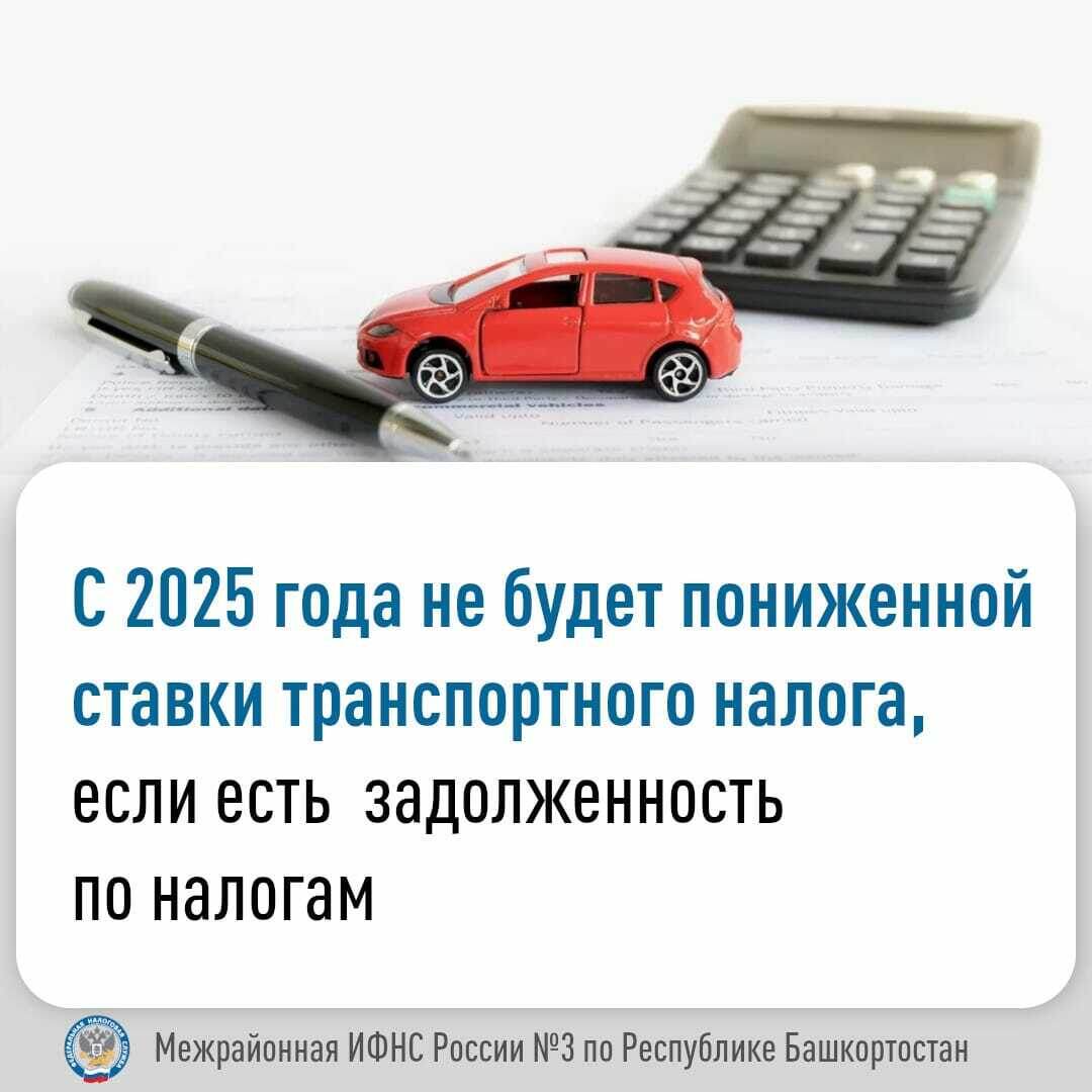 Теперь несвоевременно уплачивать налоги становится очень невыгодно! Так с 2025 года пониженная ставка транспортного налога будет применяться в Республике Башкортостан только при отсутствии задолженности по налогам. Если до 1 января долги по налогам не будут погашены, такие налогоплательщики не смогут воспользоваться пониженной ставкой по транспортному налогу. Например, если транспортный налог за автомобиль Lada Granta с мощностью двигателя 87 л.с. по пониженной ставке составляет 870 рублей за год, то должнику придется уплатить уже 2 175 рублей. Аналогично, за Kia Rio с мощностью двигателя 123 л.с. по пониженной ставке налог составляет 2 460 рублей, без применения – 4 305 рублей. Кроме того, несвоевременная уплата налогов повлечёт начисление пени, судебные издержки, блокировку счетов, арест имущества, запрет на выезд за пределы Российской Федерации. Проверить и оперативно погасить налоговую задолженность поможет Личный кабинет налогоплательщика или его мобильная версия «Налоги ФЛ». Свед