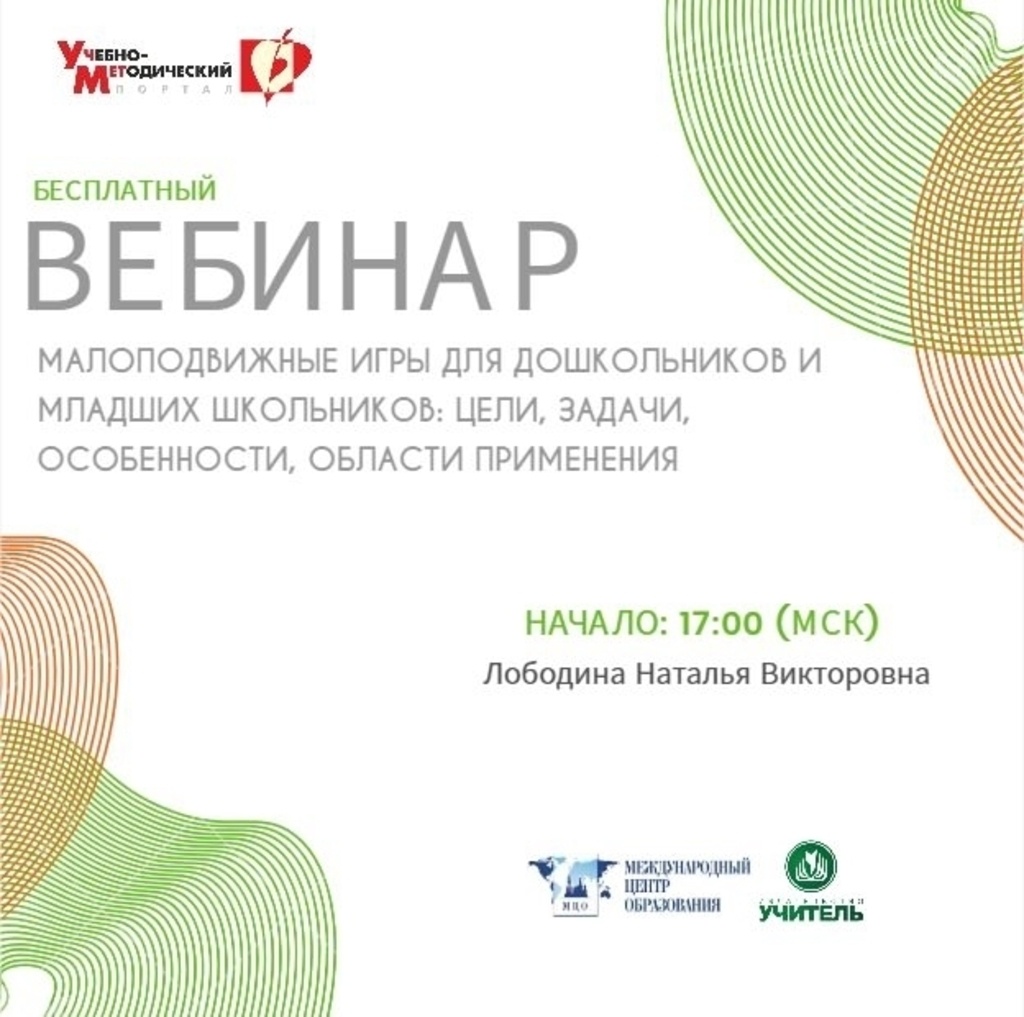 Вебинар «Малоподвижные игры для дошкольников и младших школьников: цели, задачи, особенности, области применения