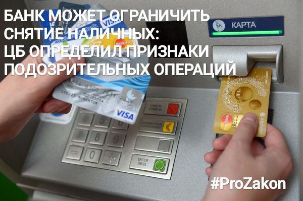 БАНК МОЖЕТ ОГРАНИЧИТЬ СНЯТИЕ НАЛИЧНЫХ: ЦБ ОПРЕДЕЛИЛ ПРИЗНАКИ ПОДОЗРИТЕЛЬНЫХ ОПЕРАЦИЙ