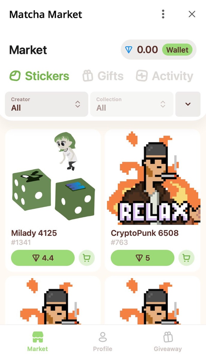 Matcha Market: Новый TON NFT маркетплейс для торговли стикерами без комиссий