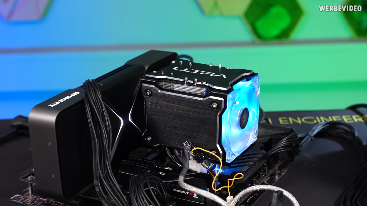 YouTube блогер der8auer протестировал систему охлаждения Ultra ChillTec 2007 года выпуска с интегрированным элементом Пельтье на современном процессоре AMD Ryzen 5 7600X3D. Данная система охлаждения тестировалась на сайте Overclockers.ru и в то время не впечатлила рецензентов, а вот сегодня, если верить тестированию der8auer, справилась с охлаждением лучше Noctua NH-D9L. Кроме этого, блогер похвалил дизайн кулера с анодированными алюминиевыми панелями, который даже сегодня смотрится очень достойно. Источник изображения: der8auer EN, YouTube В конструкции кулера Ultra ChillTec используются четыре тепловые трубки, две из которых отводят тепло с горячей части элемента Пельтье, а две другие вместе с холодной частью элемента Пельтье отводят тепло от процессора. Эти пары тепловых трубок соединяются с двумя отдельными радиаторами. Радиатор, рассеивающий тепло от процессора, расположен первым по ходу движения воздуха, за ним радиатор, рассеивающий тепло от элемента Пельтье. Вентилятор использу