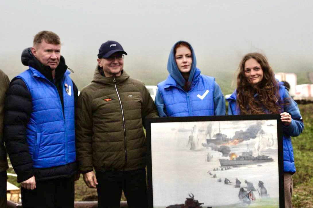 Художественное полотно, посвященное героической Курильской десантной операции 1945 года, волонтеры проекта «Чистая Арктика» передали первому заместителю руководителя Администрации Президента РФ Сергею Кириенко в последний день экспедиции на остров Шумшу. Картина, созданная Марией Шаныгиной, изображает ключевой момент сражения за освобождение Курильских островов. Это символичный подарок, приуроченный к последнему сражению Второй мировой войны, который подчеркивает важность сохранения исторической памяти и уважения к подвигу советских воинов. Волонтеры назвали ее «Последний бой». «Шумшу — это не просто остров, а место настоящего мужества. Курильская десантная операция уникальная по своей сути. Именно здесь фактически была поставлена точка в самой кровавой войне в мировой истории. То, что происходит сегодня – это очень важно. Мы обязаны сохранить память о тех, кому мы реально обязаны своей жизнью», - говорит Сопредседатель партии «ЗЕЛЁНЫЕ», Глава «Зелёного патруля», Руководитель обществен