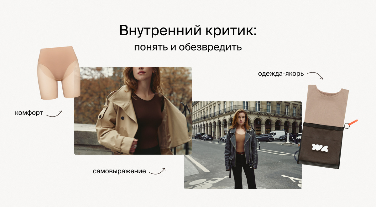 Знакомо это чувство? Этот неусыпный внутренний голос, который шепчет о недостатках, сравнивает вас с идеальными картинками. Он критикует не только тело. Этот голос – внутренний перфекционист, который из лучших побуждений загоняет в рамки бесконечной гонки за недостижимым идеалом. Ирония в том, что вместо того, чтобы мотивировать, он часто парализует, лишает радости и спонтанности. Но что, если мы скажем, что у тебя есть неожиданный, но мощный союзник в борьбе с этим внутренним критиком? Он всегда под рукой. Речь идет об одежде. Прежде чем мы поймем, как одежда помогает, давай чуть ближе познакомимся с нашим критиком. Откуда он берется? От общественных стандартов красоты, навязанных образов из медиа, опыта прошлого. Но зачастую он сам становится источником комплексов, заставляя: Одежда в этом контексте становится не просто функциональным предметом, а полем боя. Но пришло время перемирия. Ничто не шепчет о неидеальности громче, чем неудобные или неактуальные джинсы, давящий бюстгальтер и