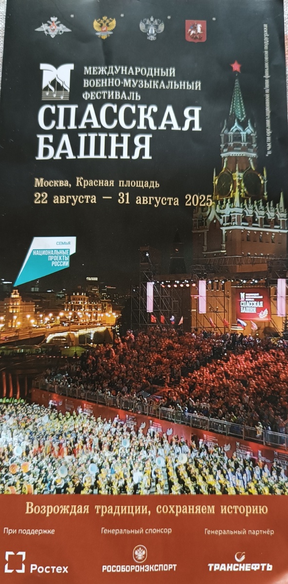 25 августа 2025 года Здравствуйте, друзья! Второй год подряд хожу на военно-музыкальный фестиваль "Спасская башня". А сам фестиваль проводится в Москве уже в 17-й раз. Зрелище грандиозное, впечатляющее, не сравнимое ни с чем! В прошлом году он меня просто ошеломил, я ничего подобного не ожидала увидеть, видимо предыдущие годы смотрела телетрансляцию недостаточно внимательно и не представляла всей масштабности этого концерта, если его можно так назвать. Известная до последнего камешка Красная площадь, преобразилась в огромную сцену, где демонстрировали своё мастерство лучшие военные музыкальные ансамбли России и зарубежных стран. Всего было 27 участников, 18 российских и 9 зарубежных ансамблей. Интересны были все. В прошлом году я смотрела выступления с видом на Спасскую башню и с самого верха. На этот раз мы с Леной ("Искра") взяли билеты на противоположную трибуну и в 1-й ряд, чтобы получше разглядеть музыкантов и других участников и сделать фото с более близкого расстояния. Организа