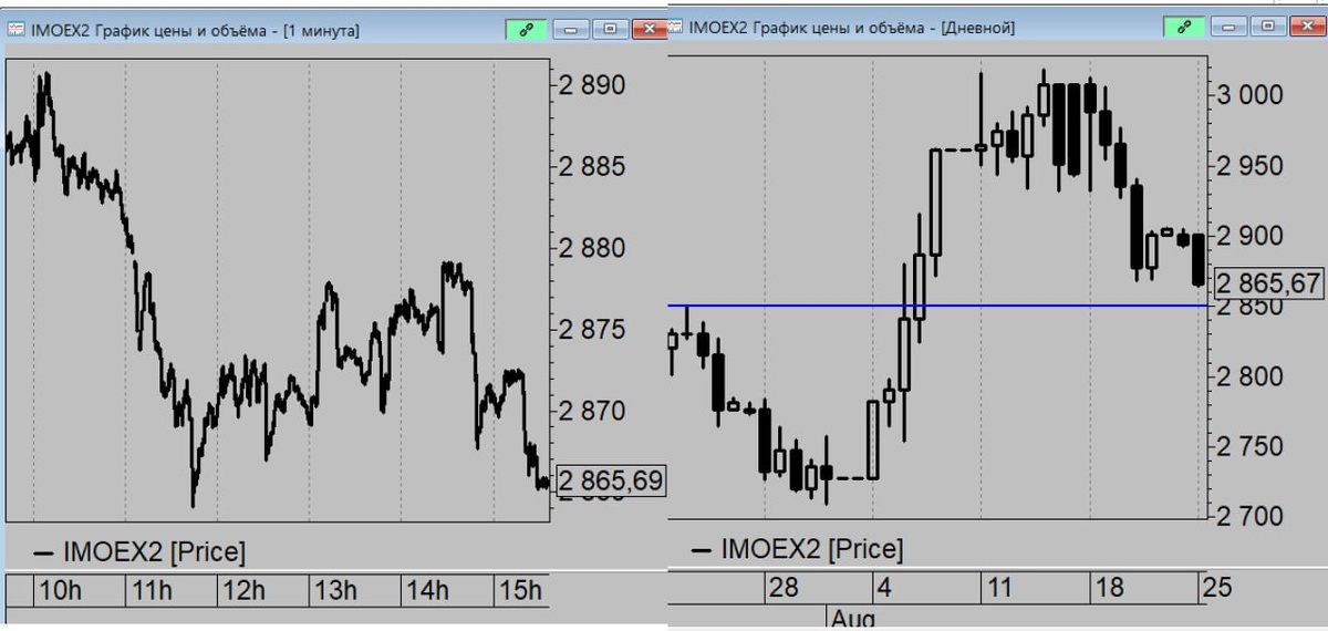 К середине торговой сессии российский рынок по прежнему очень слаб. Крупные игроки бьют по рынку вниз. Постепенно подходим к первой заметной поддержке в районе 2850.
