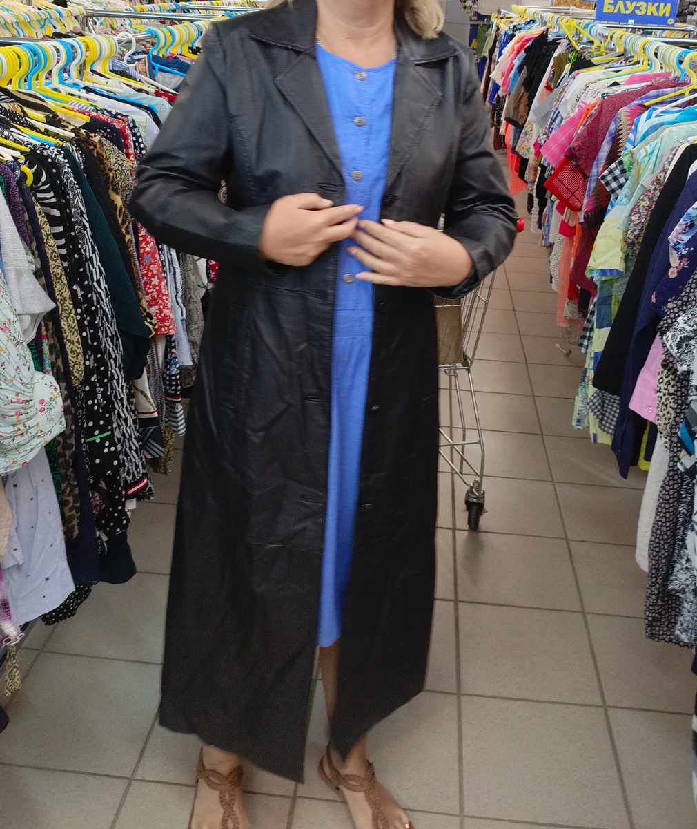 Приветствую всех на своем канале! Я об одежде, конечно же 😅! А вы о чем подумали ?)))) у нас по-прежнему лето на календаре📅. И погода это подтверждает: днем плюс 30. Но вот в магазине, в этот новый завоз, уже появилась верхняя одежда и обувь. Много кожи, но больше мужских курток. В плане цен у нашего Мегахенда завидное постоянство - "даром за амбаром". Дорого, очень дорого всё! Но типа, тебя ж не заставляют, не хошь, не бери. Найдется тот (или та), которая купит. Начинаем обзор традиционно с покупки. Кожаный красивеннный плащ, сшитый как будто специально для меня. Как было не взять ?! К тому же была договорённость с сыном, что как только я найду какую-нибудь классную вещь и захочу её купить, чтобы непременно покупала. Это будет его подарок 🎁 на мой прошедший юбилей 🎉 😁. Так мы сегодня и поступили. К тому же у нас есть негласное правило: если вещь нравится, надо покупать, не дожидаясь скидок. Потом её может уже и не быть. Так уже было не раз. Я бы жалела, если бы проворонила э