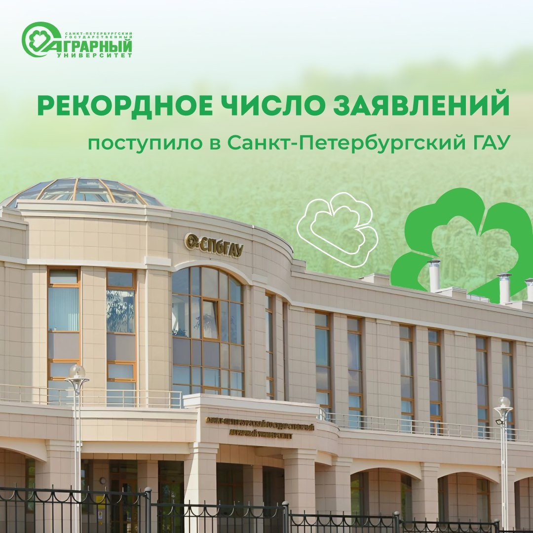 В этом году в Санкт-Петербургский ГАУ поступило рекордное число заявлений — 26 тысяч 😱 Особенно радует, что около 65% абитуриентов приехали в Санкт-Петербург из других регионов России, подтверждая статус университета как всероссийского центра притяжения для будущих профессионалов аграрной отрасли. Самыми востребованными направлениями среди абитуриентов традиционно стали: Агрономия 🌾 Агроинженерия 🚜 Зоотехния 🐄 Что это означает для будущих студентов? — Высокая конкуренция на популярных направлениях; — Развитая инфраструктура учебных лабораторий и практик; — Широкие возможности для межрегионального и межвузовского обмена; — Перспективы трудоустройства благодаря связям с предприятиями отрасли. Мы с нетерпением ждем вас, дорогие первокурсники, на торжественной линейке 1 сентября, чтобы начать путь к профессиональному успеху! 🟢