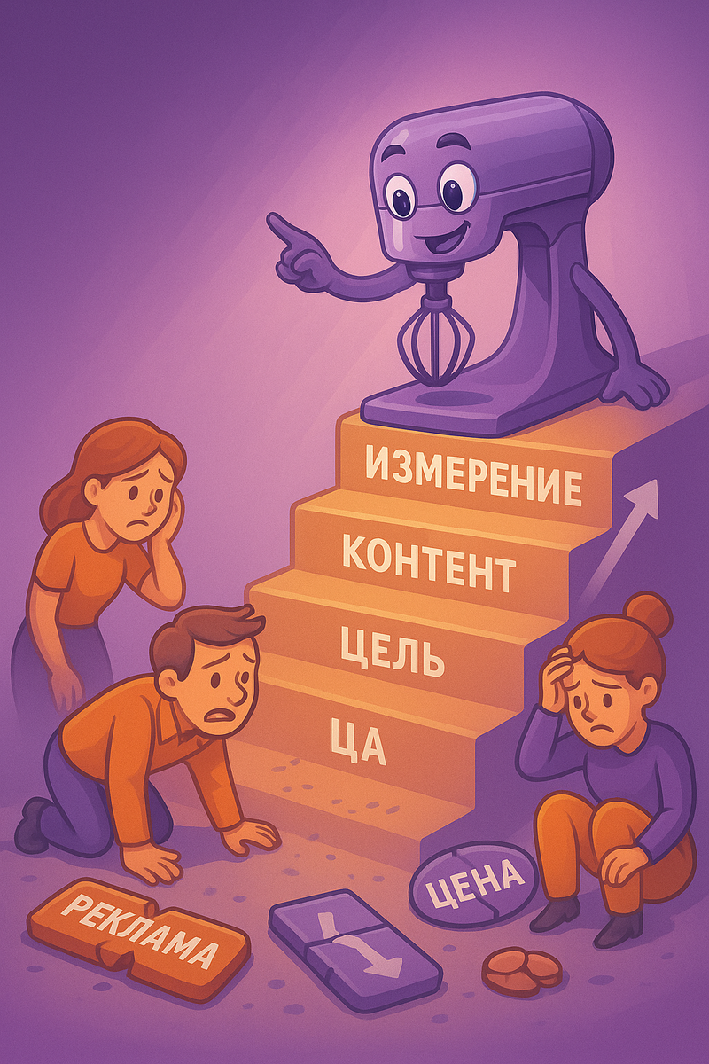 Открыли бизнес, но клиентов почти нет? Сайт есть, группа во ВКонтакте заведена, пару раз делали посты, даже листовки распечатали… но как-то глухо. Знакомо? Маркетинг без стратегии — как поход в лес без карты. Можно долго ходить кругами, но толку не будет. Разберёмся, как выстроить маркетинг с нуля — по шагам, на примерах и без лишней теории. Катя открыла студию массажа. Рекламировалась просто: «Приходите на расслабление». Клиентов почти не было. 🟢 После анализа поняла: её клиент — женщины 35+, офисные работники, уставшие от сидячей работы. Поменяла месседж: «Массаж, снимающий зажимы после работы за компьютером». И пошло. Игорь начал продавать автотовары. Потратил 50 000 ₽ на рекламу во ВКонтакте — и получил… 3 заказа. 🟢 Сделали стратегию: цель — 100 заказов в месяц, ЦА — мужчины 30–50, автомобилисты. Запустили канал в Telegram с обзорами, сделали SEO-сайт, добавили карточки в 2ГИС и Яндекс.Картах. Продажи пошли. Маша печёт торты. Сайт — с 2016 года, не открывается с телефона, цены —