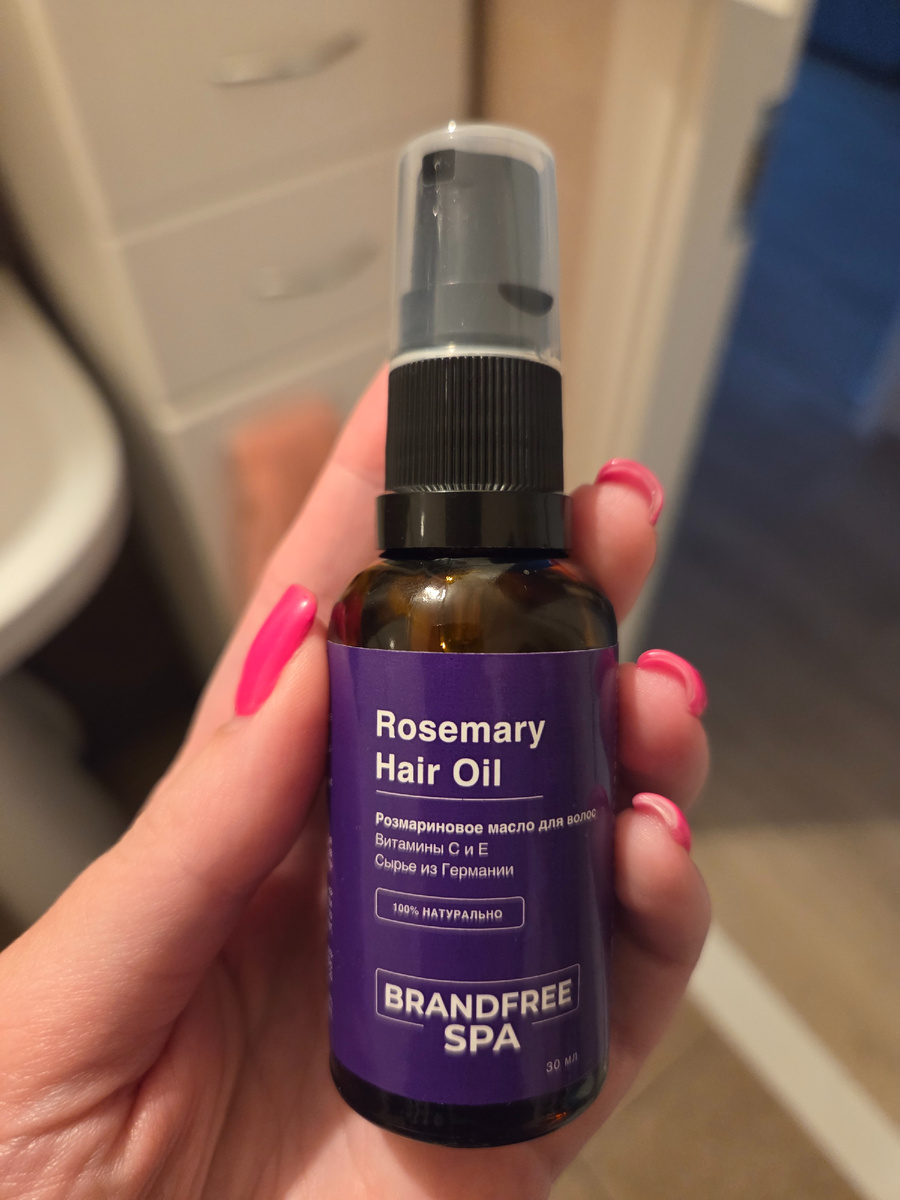 У коллеги по Дзену подсмотрела розмариновое масло от BRANDFREE SPA. Изначально понравилось, что у средства натуральный состав.