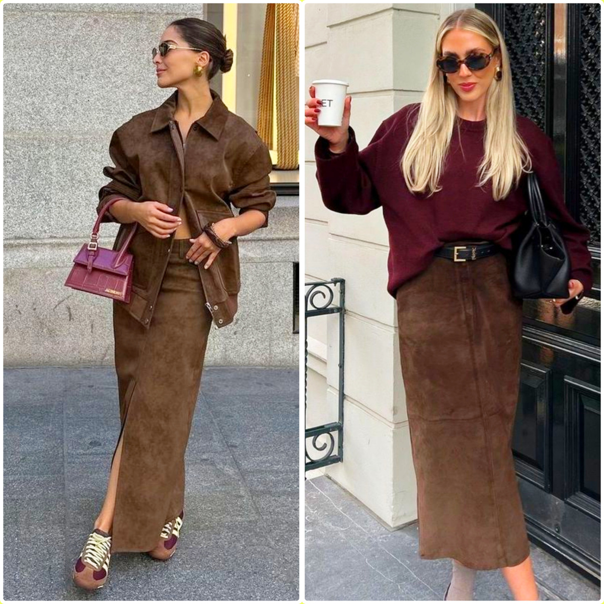 Этот материал точно не стоит обходить стороной. Замша прекрасно дополнит практически любой осенний гардероб. Можно подобрать юбку прямого кроя или остановить свой выбор на популярном А-силуэте.