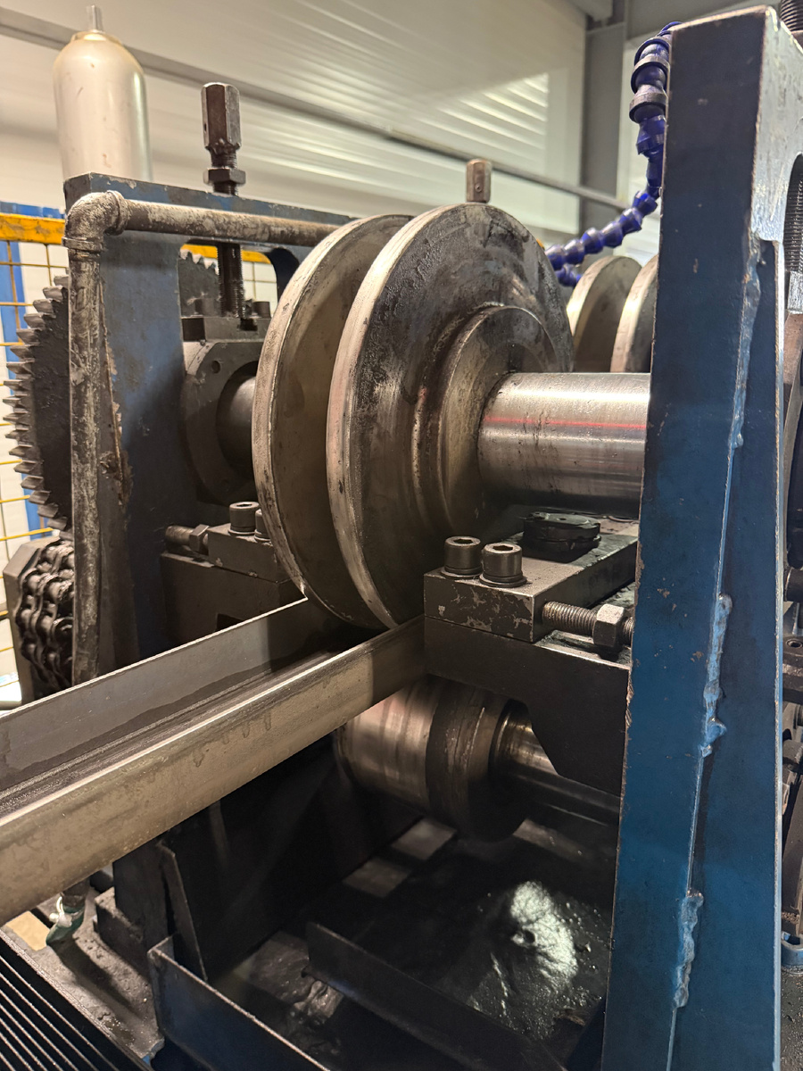 Предварительно, полоса проходит через правильный аппарат, где устраняются все вмятины и деформации, чтобы обеспечить ровную и плоскую подачу. Подготовленная полоса поступает в стан, состоящий из нескольких последовательных пар валков (клетей), где происходит постепенное формирование профиля швеллера - крайние валки формируют полки (загибают края), а центральные валки формируют спинку (основание) профиля и контролируют ширину. На последних клетях происходит окончательная калибровка профиля для достижения точных геометрических размеров и прямых углов. Готовый гнутый профиль движется по рольгангу и когда он достигает заданной длины, срабатывает летучий гильотинный нож или дисковая пила, которая движется синхронно со швеллером, отрезая его без остановки всей линии. Это обеспечивает высокую производительность.