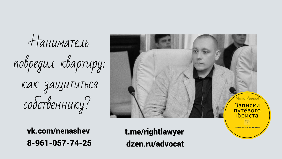 В видеоверсии есть мои комментарии к этому делу, а также ссылка на реквизиты судебного акта. Гражданин, зарегистрированный в качестве индивидуального предпринимателя, сдавал квартиру для проживания другому гражданину. Между ними возник спор по оплате жилья. Предприниматель просил взыскать с нанимателя ущерб, причиненный квартире, задолженность по плате за жилье, пеню за просрочку оплаты. Рассмотрев дело, суд указал следующее. При заключении договора, квартира передавалась ответчику в исправном состоянии. В феврале наниматель направил истцу уведомление о расторжении договора досрочно, с предложением произвести 28 февраля осмотр квартиры и подписать ее акт приема-передачи. В связи с этим в присутствии свидетелей был произведен осмотр квартиры и составлен акт осмотра жилого помещения, в котором отражен перечень ущерба причиненного имуществу. Акт приема-передачи квартиры сторо