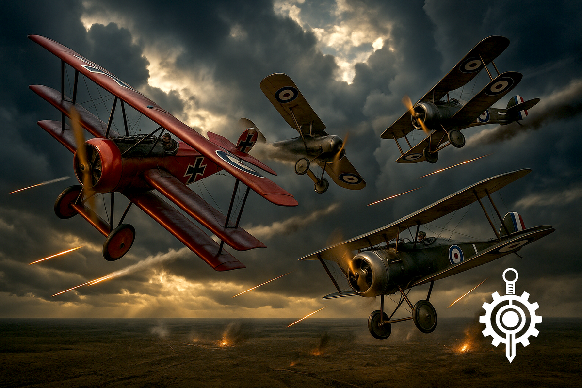 В августе 1914 года, когда Европа погрузилась в пламя Великой войны, авиация представляла собой экзотическую новинку - хрупкие деревянные конструкции, обтянутые полотном, с ненадёжными двигателями и отчаянно смелыми пилотами. Всего четыре года спустя, в ноябре 1918-го, небо над полями сражений бороздили совершенные боевые машины, способные развивать скорость свыше 200 километров в час и вести смертельные дуэли на высоте семи тысяч метров. За эти четыре года авиация прошла путь эволюции, на который в мирное время потребовались бы десятилетия.