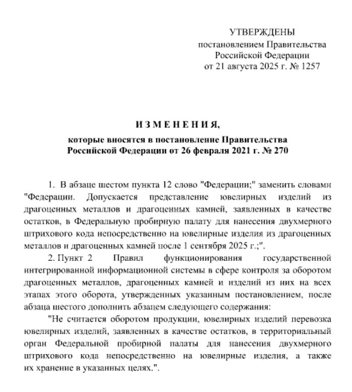 ⚡️⚡️⚡️⚡️ Государство разрешило хранение немаркированных ювелирных изделий "остатков" после 1 сентября 2025 года.