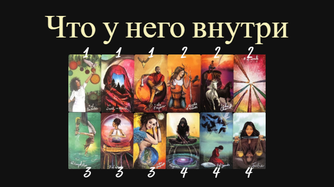 Расклад опишет, что у него внутри, в каких энергиях он сейчас, что у него происходит, что он думает о вас.