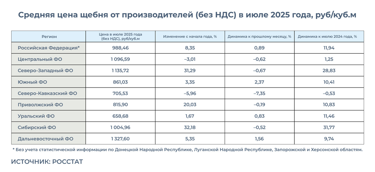Росстат опубликовал данные о средних ценах на щебень от производителей (без НДС) за июль 2025 года. Стоимость щебня по России по отношению к июлю прошлого года выросла на 11,94% и составила 988,46 рублей за кубический метр (706,04 рублей за тонну). Сильнее всего цены по отношению к июлю 2024 года подскочили в Сибирском (31,77%) и Северо-Западном (28,83%) федеральных округах. С начала года рост цен на щебень в среднем по стране составил 8,35%. Наибольший прирост наблюдается в Сибирском (32,18%) и Северо-Западном (31,29%) федеральных округах. Снижение цен в 2025 году фиксируется в Северо-Кавказском (–5,96%) и Центральном (–3,01%) федеральных округах. Статистика по ценам за предыдущие месяцы: Средняя цена щебня от производителей в июне 2025 года Средняя цена щебня от производителей в мае 2025 года Средняя цена щебня от производителей в апреле 2025 года Средняя цена щебня от производителей в марте 2025 года Больше актуальных новостей о рынке щебня читайте на нашем портале «Щебень России»