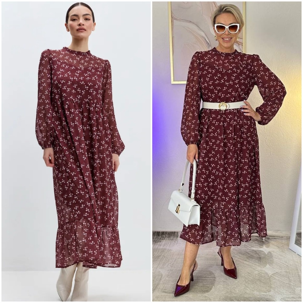 Здравствуйте, дорогие читатели! Меня зовут Ирина, я - стилист, и на этом канале показываю одежду и аксессуары с Wildberries такими, как они есть, то есть, из серии "ожидание/реальность". Мои параметры: рост 169 см, вес 67 кг, 94-74-100 ✅Основной канал: Стильно - не значит дорого! Ставьте лайк в поддержку канала, и давайте смотреть на мою сегодняшнюю покупку. Шифоновые платья: воздушность в трех вариациях Эта модель покорила своим универсальным кроем и нежными принтами, поэтому я заказала его сразу в трех вариациях (белое, бордовое и оливковое). Струящийся шифон на подкладке создает ощущение легкости, сохраняя при этом элегантность силуэта. Свободный крой трапеция мягко ниспадает от груди, скрывая особенности фигуры. Длинные рукава-фонарики и воланы по подолу добавляют движения каждому шагу. Длина миди делает платье удобным для повседневной носки. Хорошее качество обработки: аккуратные рюши, ровные строчки и удобная застежка на пуговицах. Материал приятен к телу, не требует сложного ухо
