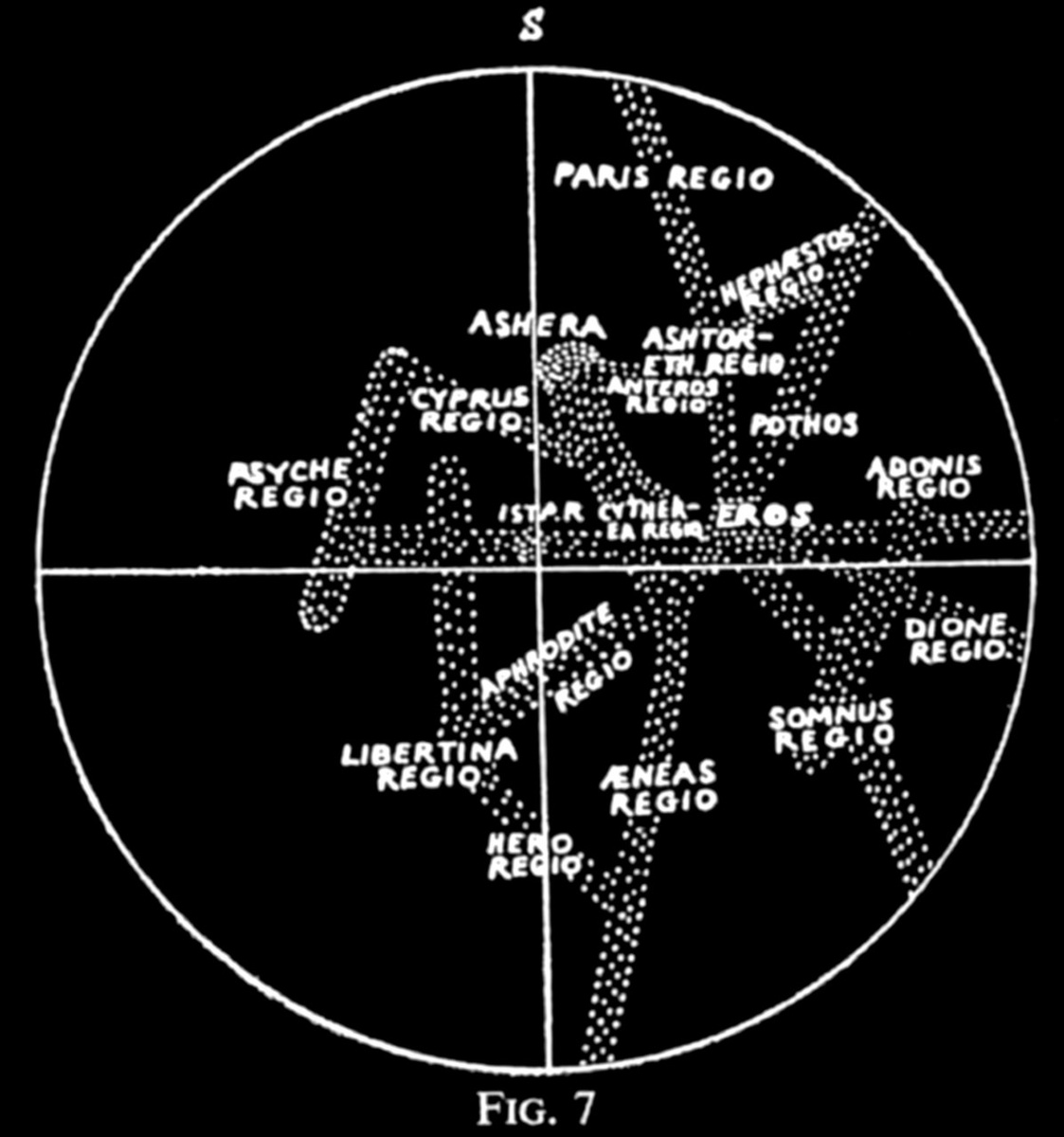 И вот однажды Лоуэлл заметил, что когда он уменьшал диафрагму телескопа, на поверхности Венеры проявлялось загадочное тёмное пятно со структурами, похожими на спицы, исходящими от него. Лоуэлл прекрасно знал, что у Венеры плотная атмосфера, через которую невозможно ничего рассмотреть. Но что он мог поделать, если он видел эти странные линии, которые могли существовать только на поверхности? Ещё более странно было то, что эти структуры всегда казались обращёнными к Земле. Это означало бы, что Венера вращается вокруг оси практически синхронно с Солнцем. Увы, этот вывод тоже не соответствовал другим наблюдениям. Но самым озадачивающим был тот факт, что никто, кроме Лоуэлла, не мог видеть эти линейные структуры.