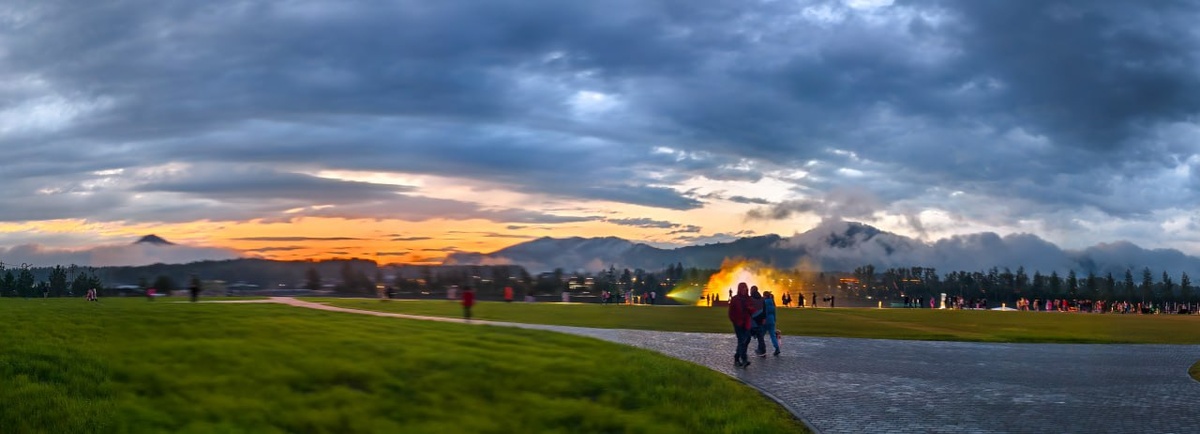 «Исток» в Манжерок Фестиваль мульти-медиа искусства и музыки «Исток» на курорте Манжерок в прошедшие выходные, как нынешнее лето: то дождь, то солнце, буквально и в переносном смысле. Вроде и название скрепное, «Исток», но намёк на Woodstock прозрачнее, чем воды озера Манжерок. Тогда тоже заканчивалась вьетнамская война, люди хотели мира и любви, шел дождь и сверкали молнии, как нынче. Озеро, кстати, теперь уже не такое большое, не такое чистое, илистое и заросшее. Из дикого места отдыха, где при желании еще можно было самому найти лет 20 назад местную реликвию, водяные орехи чилимы, Манжерок медленно, но верно превращается во всесезонный курорт мирового уровня, русскую Швейцарию. Еще 5 лет назад мы из кабины швейцарского же подъемника наблюдали, как выгоняют бродячих коров со склонов, а нынче это уже местный мем. Коровы здесь не ходят. Самый известный банк страны строит и перестраивает роскошный отель, шале, детский парк развлечений, родельбан… Открыли нынешние курорты Алтая первы