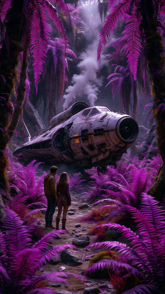 Корабль с оглушительным треском проносится сквозь верхушки гигантских деревьев, выкашивает просеку в джунглях и с последним шипением умирающих двигателей тяжело плюхается на грунт, накренившись на бок.