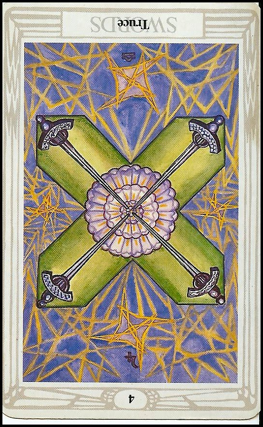 В ответ на этот вопрос выпала карта 4 мечей в перевернутой позиции.