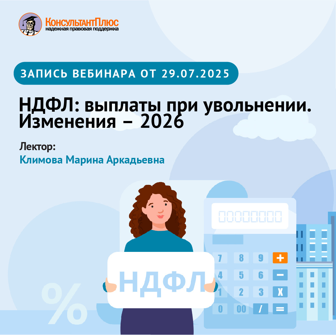 Смотрите в системе КонсультантПлюс новый видеосеминар для бухгалтеров «НДФЛ: выплаты при увольнении. Изменения – 2026» В заключительной части вебинара КонсультантПлюс, проведенного 29.07.2025, лектор разъяснит, как удерживать НДФЛ с выплат при увольнении. Также будут рассмотрены грядущие изменения: новый порядок обложения матпомощи при рождении ребенка и предоставления стандартного вычета. Вебинар провела Климова Марина Аркадьевна, преподаватель ИПБ России и Палаты налоговых консультантов, консультант-практик по вопросам налогообложения, бухгалтерского учета и трудового права, кандидат экономических наук. Смотреть видеоролик в КонсультантПлюс ⏩ Получить бесплатный пробный доступ к КонсультантПлюс #консультантплюс #видеоконсультант #ндфл #выплатыприувольнении #бухгалтеру