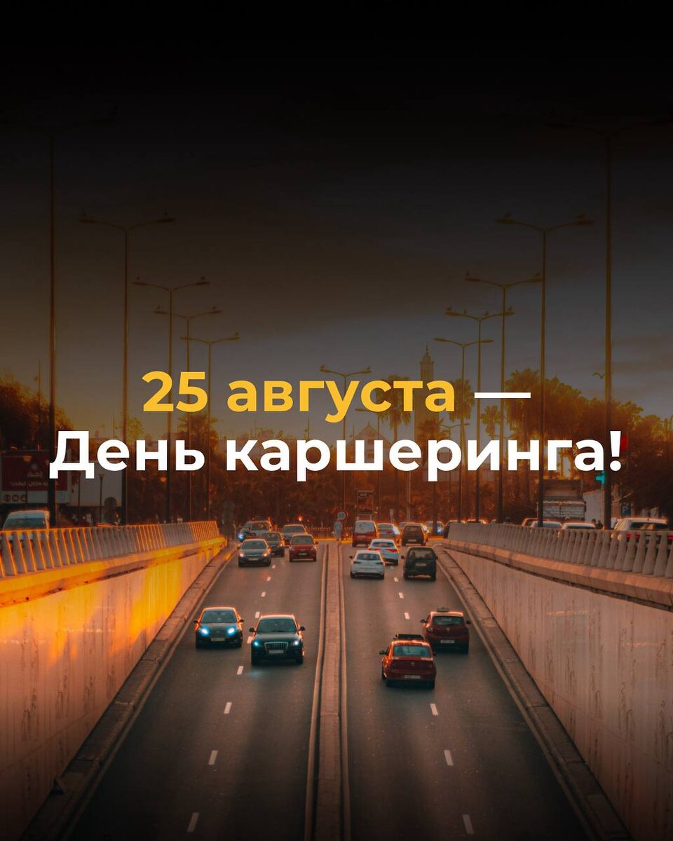 С Днём каршеринга! Этот способ аренды автомобиля не только избавил потребителей от поиска парковки и мытья машины по выходным, но и совершил технологическую революцию в мире транспорта! Каршеринг популяризировал аренду автомобилей, сделал её по-настоящему доступной, удобной и, самое главное, перевел её в цифровой формат! Желаем всем находить идеальный автомобиль для любых задач и добираться до цели с удовольствием и комфортом. Пусть каждая поездка будет приятной и удобной!