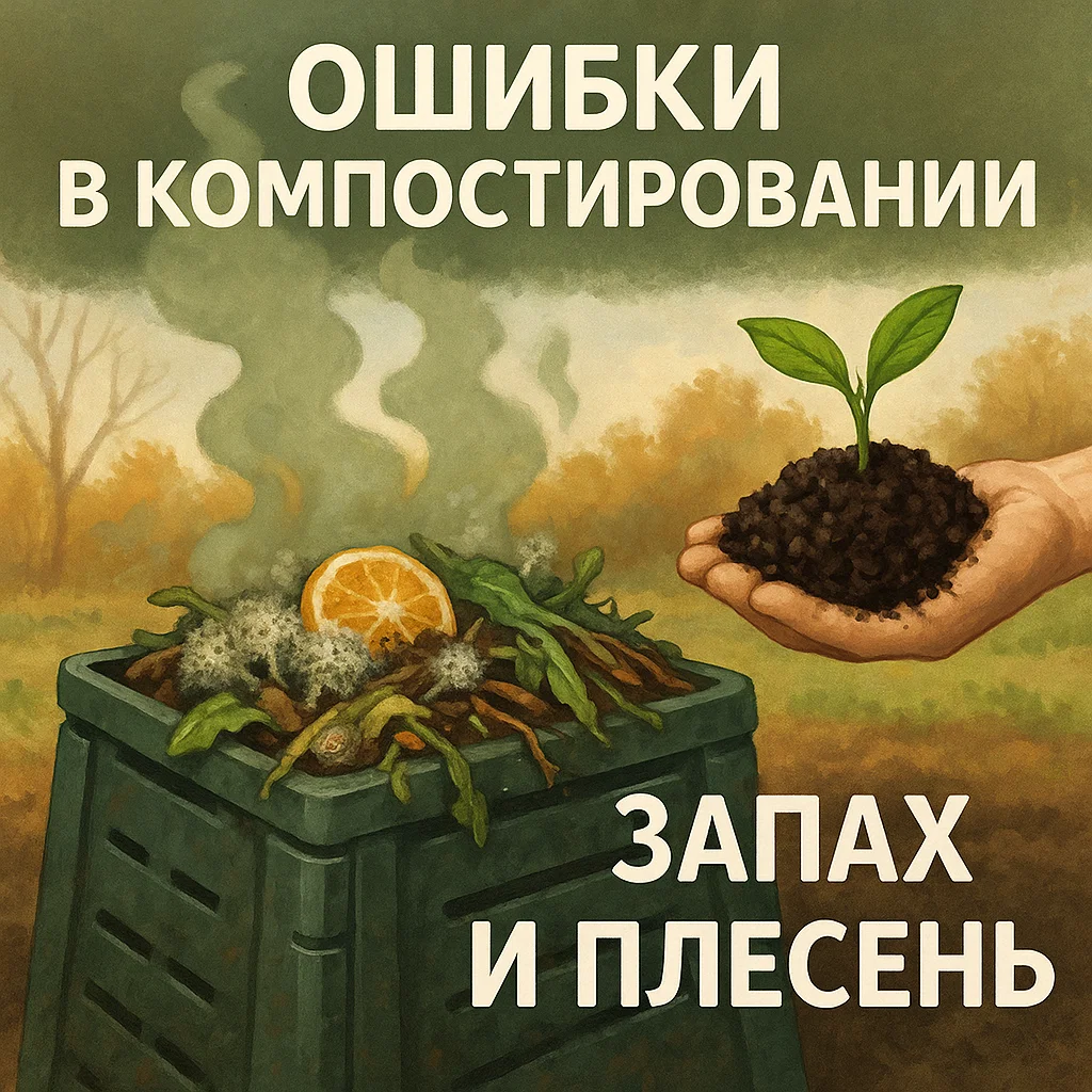 Компост — это сердце органического огорода. Всё лишнее с грядки, из кухни и сада можно превратить в чёрное, рассыпчатое удобрение, которое делает землю плодороднее. Но есть одно «но»: при неправильном подходе куча начинает вонять, покрываться плесенью и привлекать соседских котов, мух и даже крыс. Запах тухлого яйца вместо аромата земли, белый или серый налёт вместо ровного перегнивания — всё это не норма. Это сигналы, что в процессе закрались ошибки. Разберёмся, какие именно и как их исправить, чтобы запах компоста был «лесным», а не канализационным. Начнём с простого: хороший компост пахнет землёй после дождя. Лёгкий, чуть сладковатый аромат перегноя, никакой вони. Это значит, что внутри идёт правильное аэробное разложение — органику перерабатывают бактерии и грибы, которым нужен воздух. Если же появляется резкий запах компоста: Многие делают так: бросают в компост всё подряд — свежую траву, кухонные очистки, остатки овощей. И думают: чем больше, тем лучше. Но избыток «зелени» = слиш