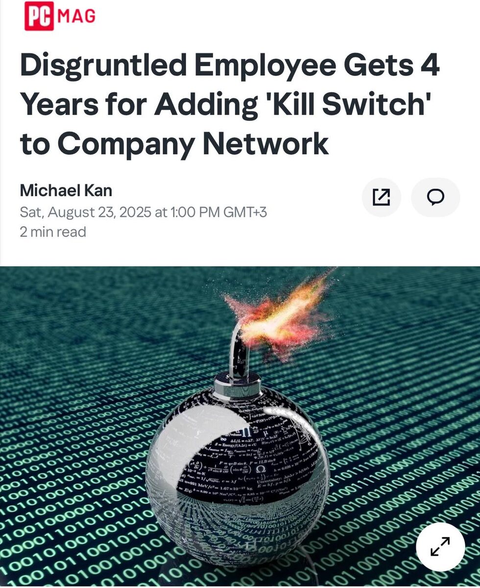 👨💻 Скрипт «самоуничтожения» за оффер — 4 года тюрьмы 55‑летний айтишник заранее написал «килл‑свитч»: если его уволят — скрипт всё снесёт. Когда у него забрали ноут и отключили профиль, триггер сработал: у коллег массово отвалились доступы, компания попала на сотни тысяч долларов и восстанавливала системы больше года. Суд дал 4 года. Вывод простой: «ключи от королевства» не должны лежать у одного человека, а любые «красные кнопки» — без контроля. Нормальный offboarding, ревизия прав и аудит автоматизаций — не бюрократия, а страховка. А у вас кто держит «ключи от ключей» — и что будет, если этот человек уйдёт? #Techtaim