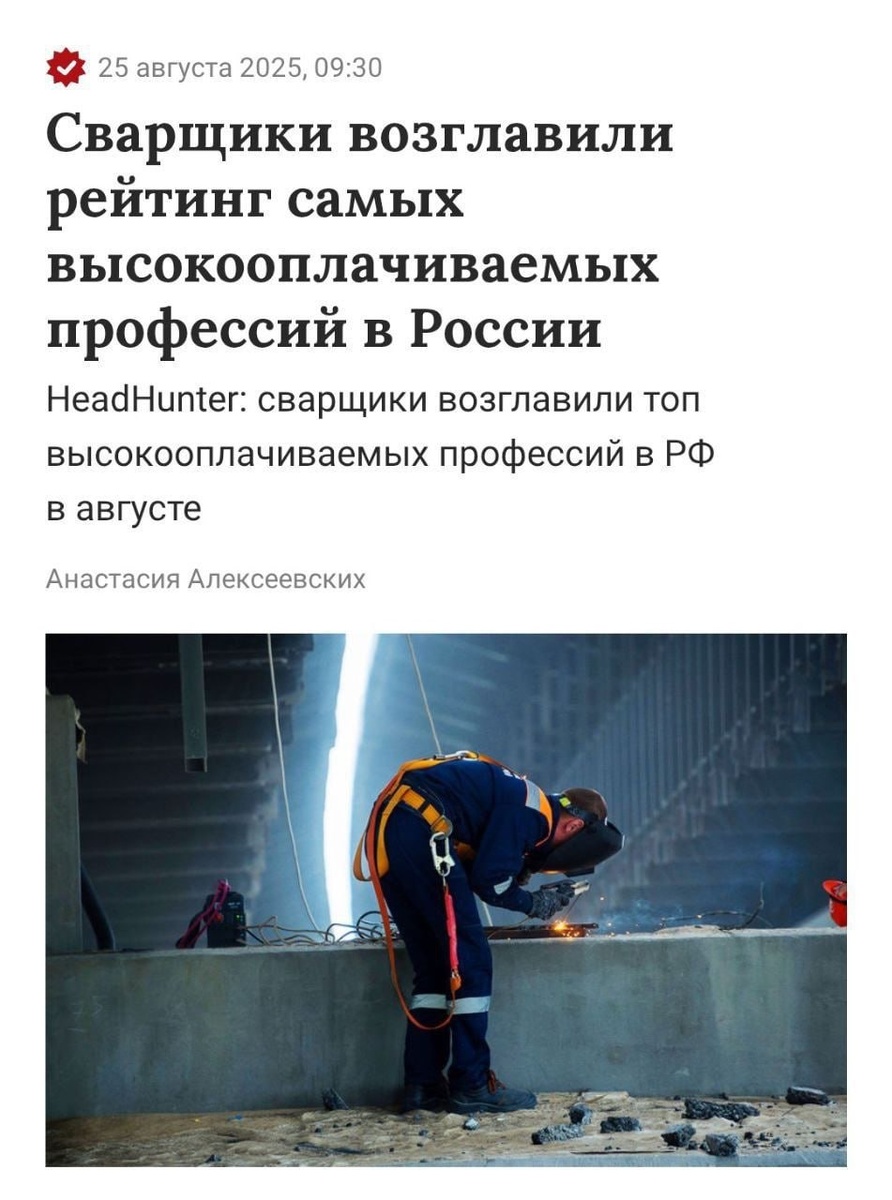Это не я придумал - самая прибыльная профессия в России не ИТ, а сварщики :) Средняя зарплата = 228 000 ₽, обогнав даже опытных