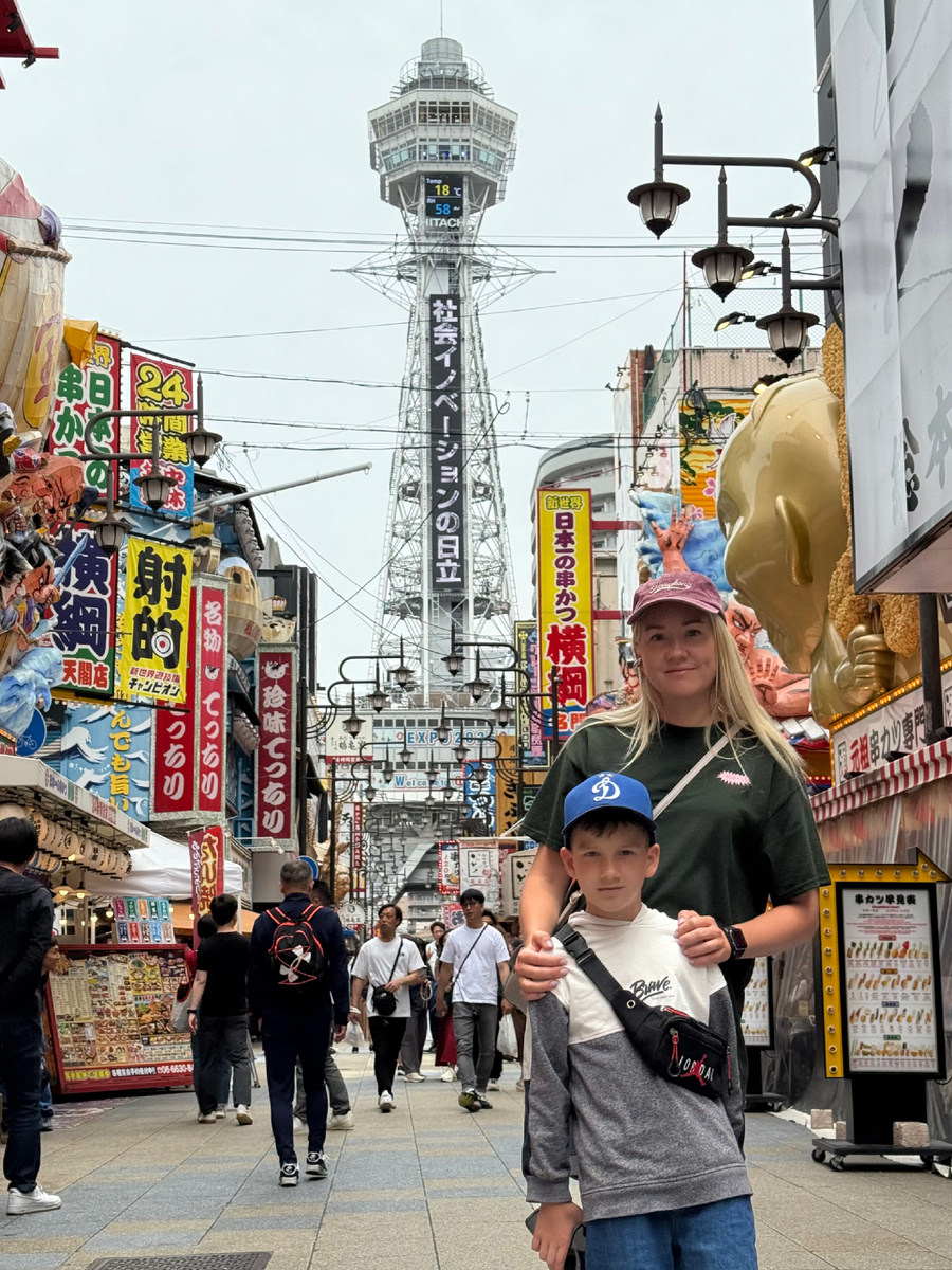 Здесь будто оживает ретро-Япония: неоновые вывески, уличные забегаловки, старомодные кинотеатры и, конечно же, символ квартала – башня Цутэнкаку. Мы здесь прогулялись и днем и вечером, поэтому спешим поделиться атмосферой этого места.