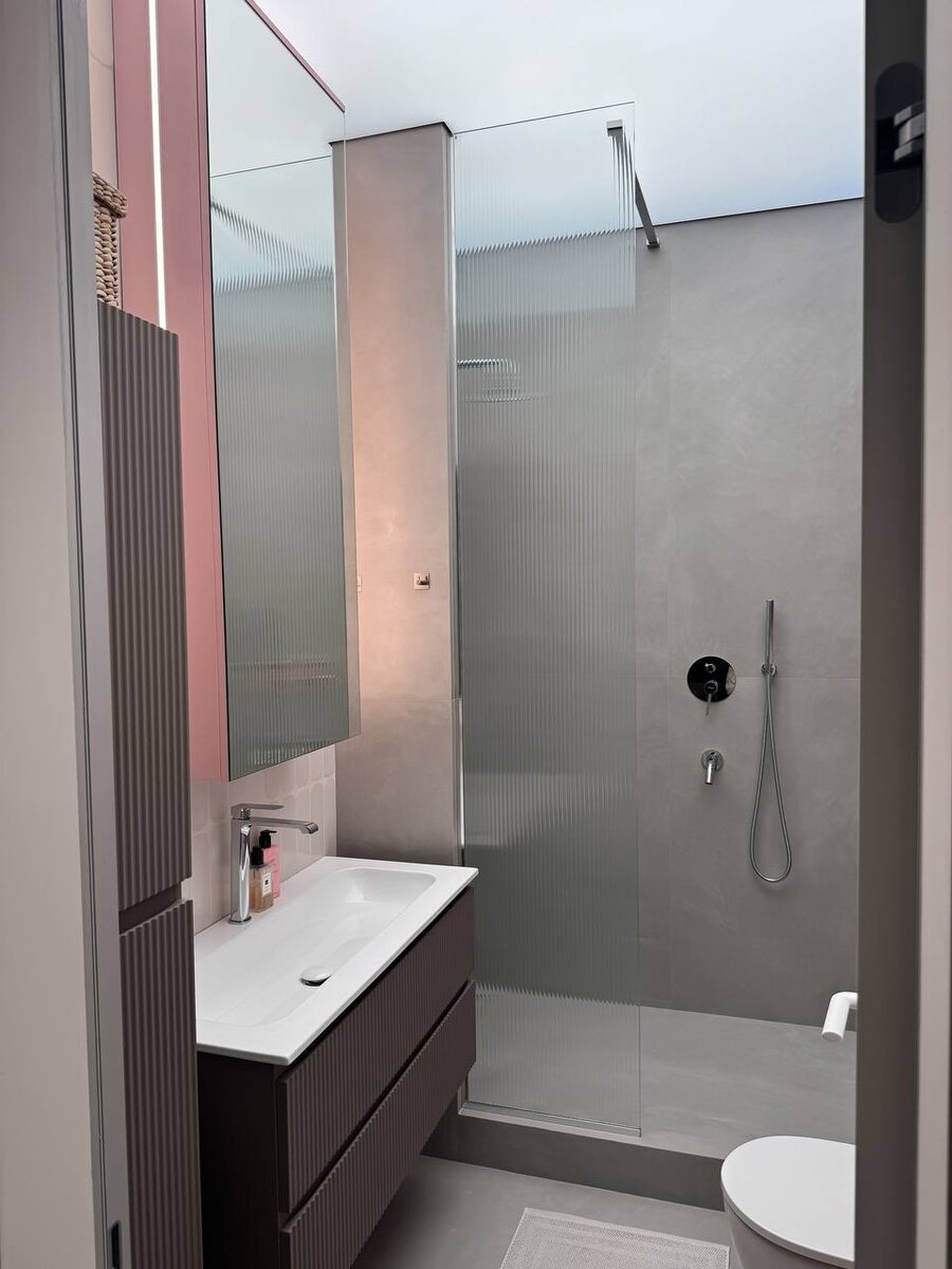 Не честно, если я буду говорить, что вообще все плохо, потому что есть и хорошие вещи, которые приносят много радости. Например, мы полностью закончили с мебелью во втором санузле, который я раньше не показывала. И именно его мы больше всего видоизменили по сравнению с дизайн проектом. Тут не было рефленого стекла. А вся мебель была на заказ. В итоге - это тот самый шкаф, что открывался в ручку двери. Мы его демонтировали и купили совсем другую готовую конструкцию. Также именно тут разбилась каменная раковина. Но. Забыли о плохом. И просто наслаждаемся. И да. Именно тут я решила попробовать светопрозрачный потолок. И это восторг. Если бы я знала, что он так прекрасен, во втором санузле повторила бы. P.S. я отчаянно ищу классные ведра в санузлы. Веселые, цветные, каменные, да какие угодно симпатичные. А хочется поставить необычный декор над инсталляцией. Пока ничего не придумывается. #DidenokДом В этом посте есть большое видео, которое не загрузилось в Дзен. Откройте оригинал поста в