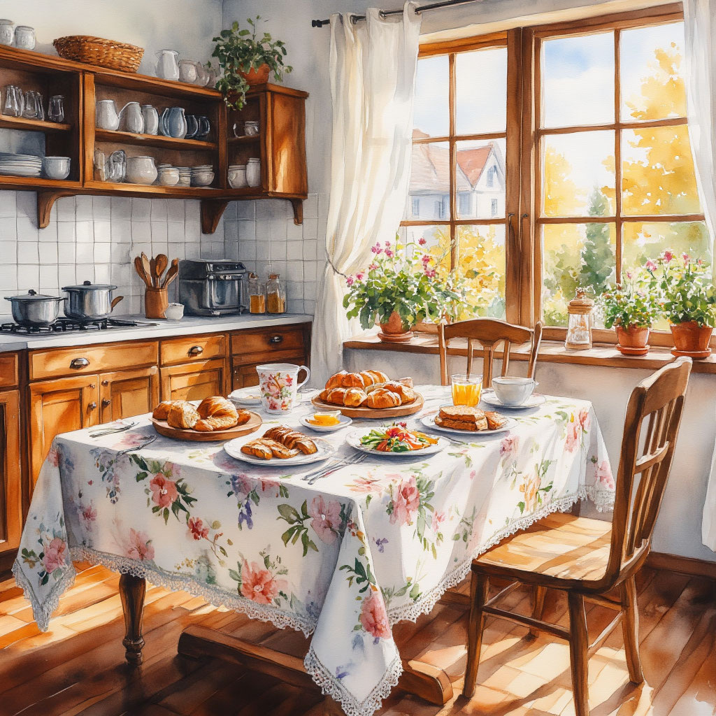 – Скатерть сразу создаёт ощущение уюта и завершённости — даже самая простая кухня с ней становится теплее.