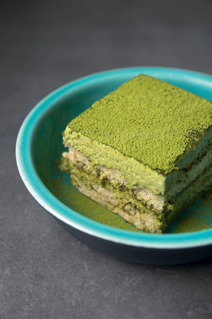 На прошедших выходных мы опубликовали подробную статью про тирамису. Сегодня это один из самых популярных десертов в мире, но многие наверняка не все в курсе, что появился он в Италии только в конце 1960 годов. Полюбившееся многим нежное и воздушное сладкое блюдо отличается особой гибкостью и позволяет кондитерам готовить его в разных интерпретациях, сохраняя идентичность и узнаваемость. Например, в [KU:] рамен изакая мы обнаружили зеленый тирамису. Бренд-шеф Вадим Мальков использует в своей версии тирамису классические печенья савоярди (они же «дамские палочки»), легкий сахарный сироп, крем маскарпоне и японский зеленым чай маття (у нас его еще часто называют матча). Если вы захотите повторить десерт дома, то вот, как это можно сделать. Ингредиенты для крема: Ингредиенты для пропитки: Бисквит: Взбиваем сливки до плотных пиков и убираем в холодильник. Следом взбиваем желтки добела и тонкой струйкой вливаем в них сироп из воды и сахара, разогретый до температуры 118°C. Продолжаем взбива